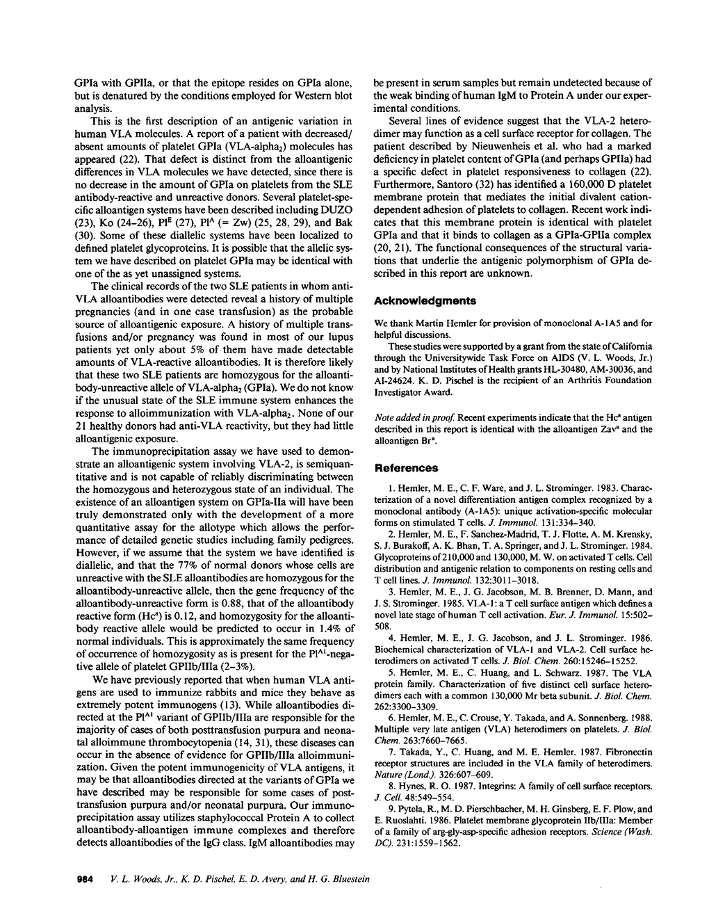 V L Woods Jr, K D Pischel, E D Avery, H G Bluestein