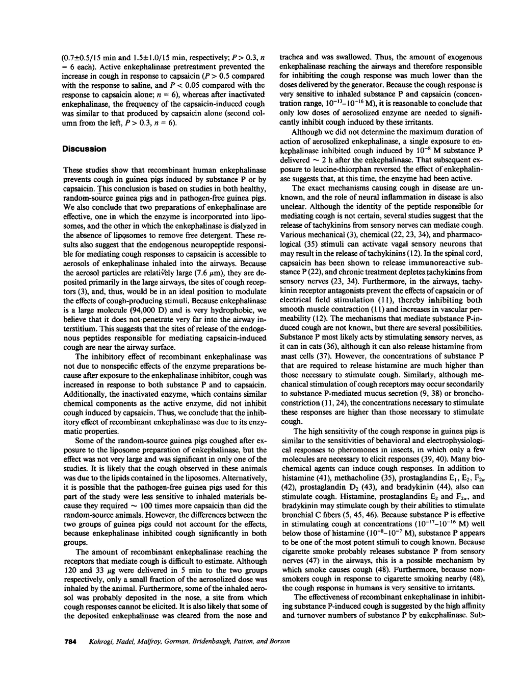 H Kohrogi, J A Nadel, B Malfroy, C Gorman, R Bridenbaugh, J S Patton, D B Borson