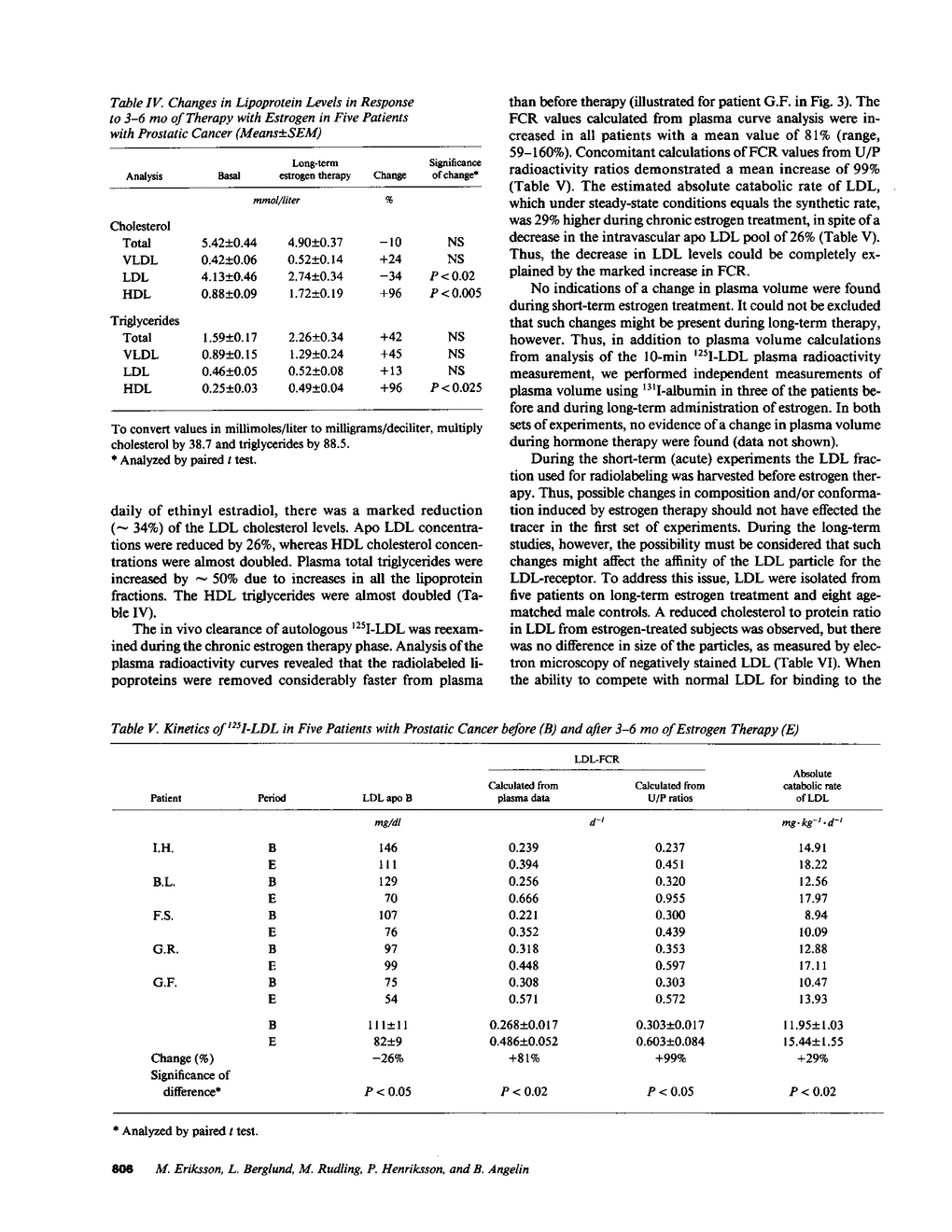 M Eriksson, L Berglund, M Rudling, P Henriksson, B Angelin