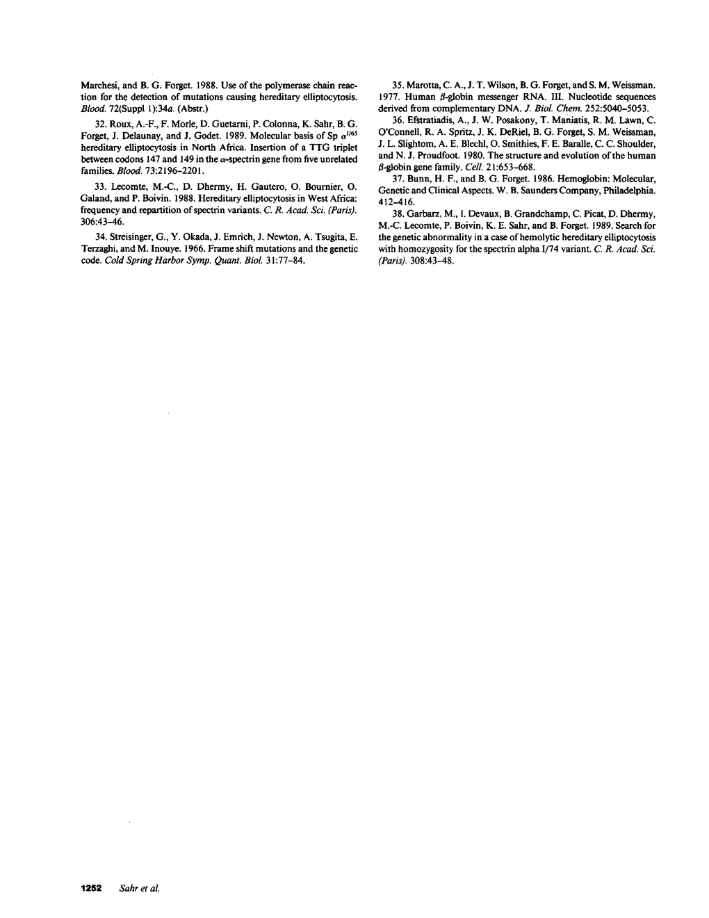 K E Sahr, T Tobe, A Scarpa, K Laughinghouse, S L Marchesi, P Agre, A J Linnenbach, V T Marchesi, B G Forget