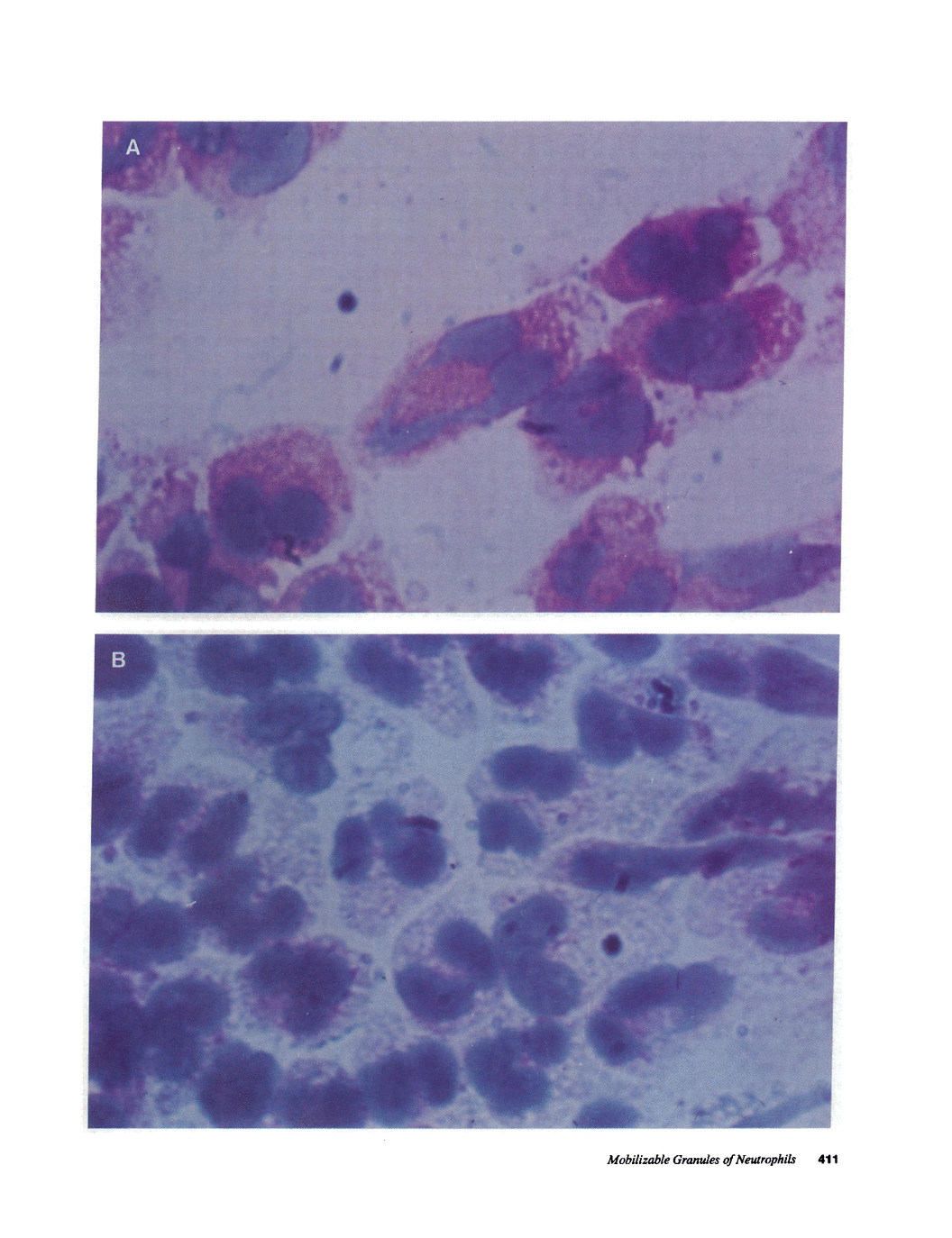 Tetranectin, a protein recently identified in a wide variety of human secretory cells (Christensen, L., and I. Clemmensen. 1989. Histochemistry. 92:29-35) was found to colocalize with latent alkaline phosphatase activity in fractions well separated from azurophil granules, specific granules, gelatinase-containing granules, and plasma membranes when postnuclear supernatants of nitrogen-cavitated neutrophils were fractionated on discontinuous Percoll density gradients. Stimulation of intact neutrophils with nanomolar concentrations of FMLP, leukotriene B4, 10-100 U/ml of tumor necrosis factor, and granulocyte-macrophage colony-stimulating factor resulted in parallel release of tetranectin and translocation of alkaline phosphatase to the plasma membrane. Furthermore, intracellular pools of tetranectin and latent alkaline phosphatase were completely released from neutrophils under conditions that barely induced release of specific granules containing B12-binding protein. These findings indicate that tetranectin and latent alkaline phosphatase define an easily mobilizable population of cytoplasmic storage organelles in human neutrophils which are functionally distinguishable from azurophil, specific, and gelatinase-containing granules. These organelles may play an important role as stores of membrane proteins that are mobilized to the cell surface during stimulation by inflammatory mediators.