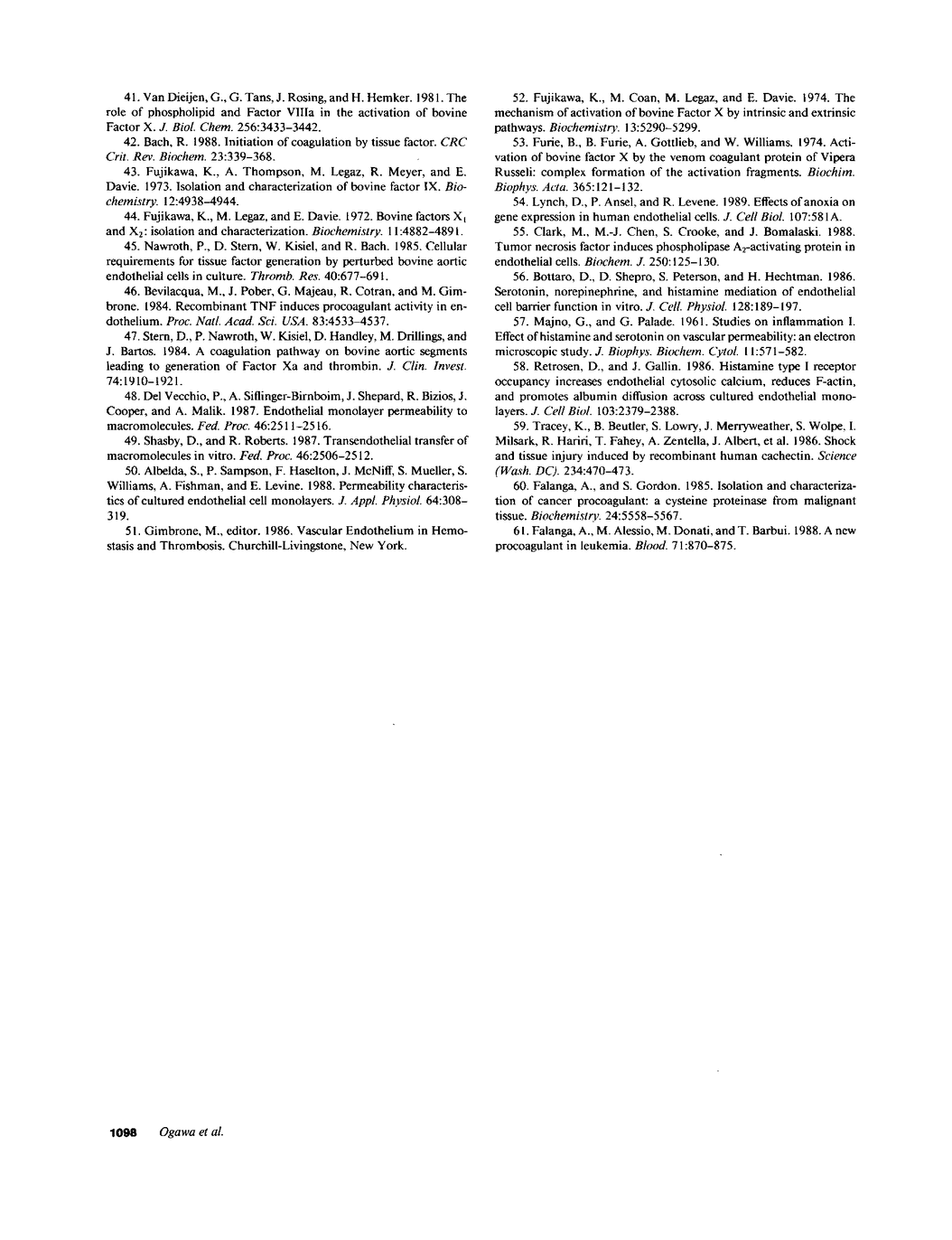 Exposure of cultured endothelium to environments with low concentrations of oxygen, in the range of those observed in pathophysiologic hypoxemic states in vivo, compromises cellular barrier and coagulant function. An atmosphere with PO2 approximately 14 mm Hg was not lethally toxic to endothelial cultures, but cells became larger and exhibited small intercellular gaps. At low oxygen concentrations, passage of macromolecular tracers through hypoxic endothelial monolayers was accelerated in a time- and dose-dependent manner, presumably by a paracellular pathway via the gaps. Cell surface coagulant properties of the endothelium were also perturbed. At PO2 approximately 14 mm Hg thrombomodulin antigen and functional activity on the cell surface were diminished by 80-90%, and Northern blots demonstrated suppression of thrombomodulin mRNA. The decrease in thrombomodulin was twice as great compared with the general decline in total protein synthesis in hypoxia. In addition, expression of a direct Factor X activator developed under hypoxic conditions; the activator was membrane-associated and expressed on the surface of intact cultures, Ca-dependent, inhibited by HgCl2 but not PMSF, and had Km approximately 25 micrograms/ml for the substrate at pH 7.4. Synthesis of the activator was blocked by inclusion of cycloheximide, but not warfarin, in the culture medium. These results demonstrate that endothelial function is perturbed in a selective manner in the presence of low concentrations of oxygen, providing insights into mechanisms which may contribute to vascular dysfunction in hypoxemic states.