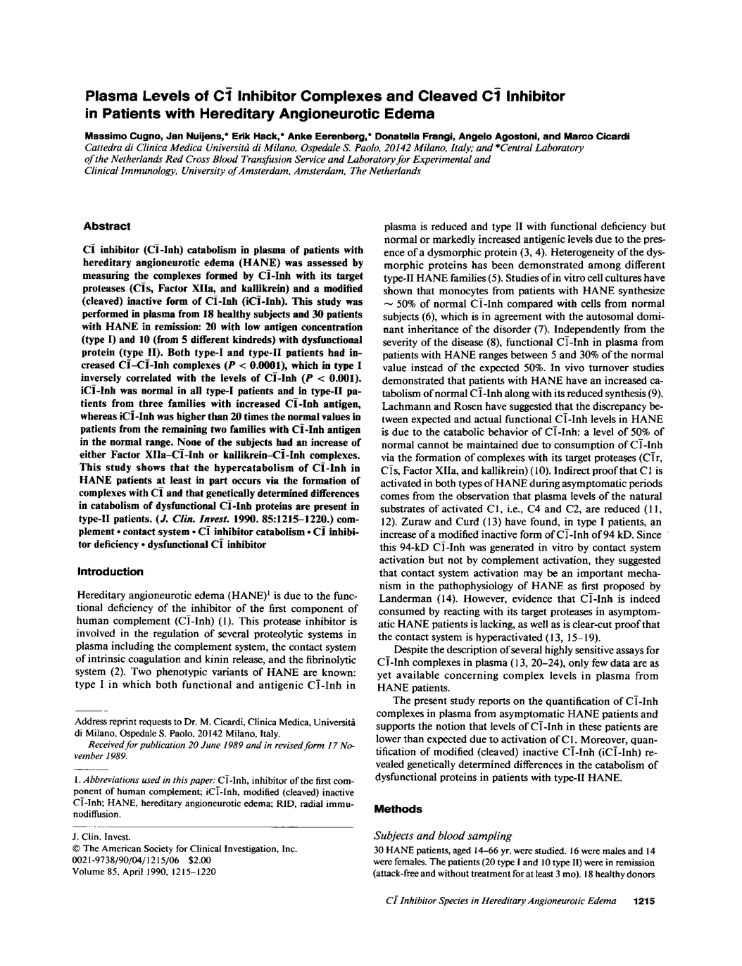 M Cugno, J Nuijens, E Hack, A Eerenberg, D Frangi, A Agostoni, M Cicardi