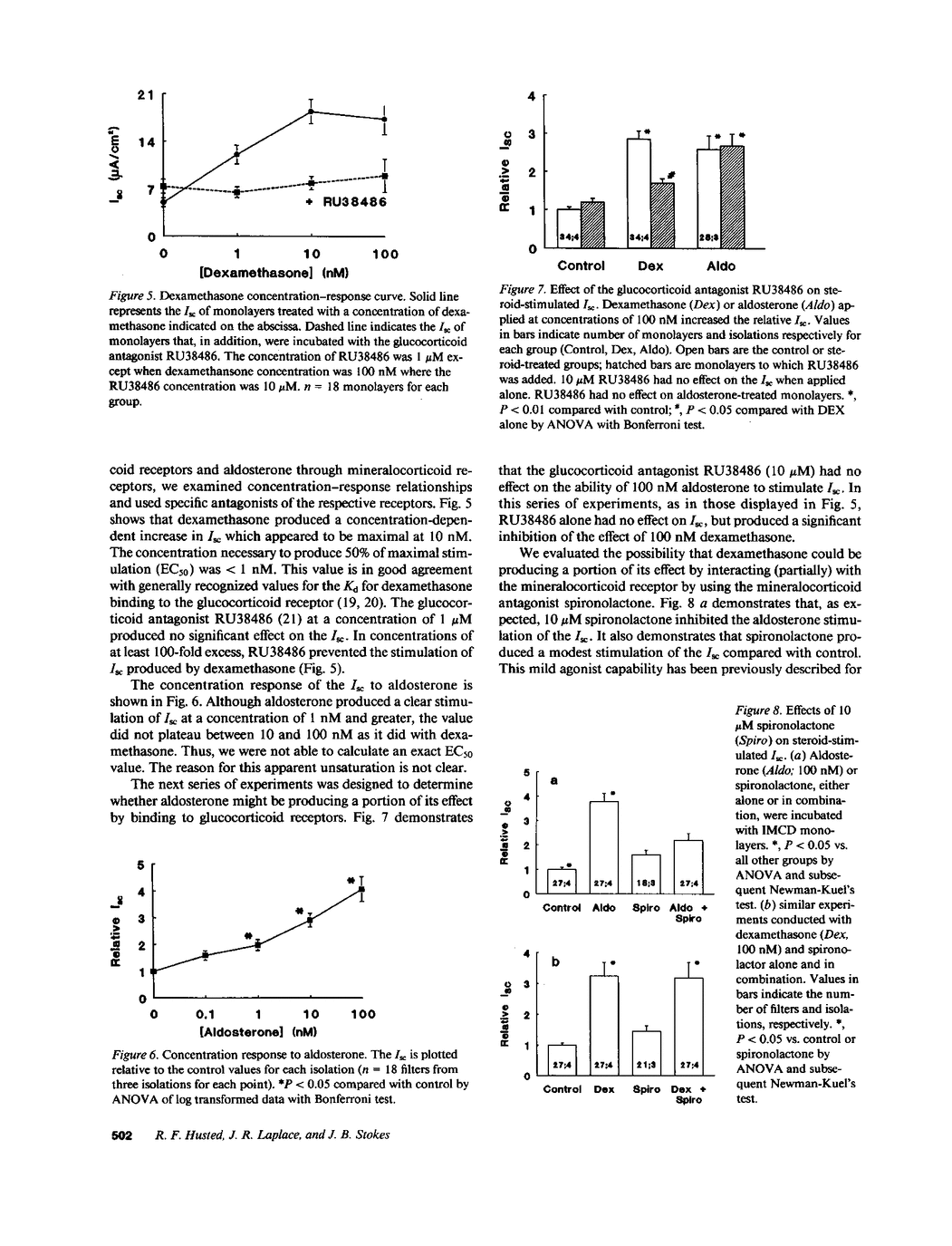 We have investigated the effect of steroid hormones on Na+ transport by rat renal inner medullary collecting duct (IMCD) cells. These cells, grown on permeable supports in primary culture, grow to confluence and develop a transmonolayer voltage oriented such that the apical surface is negative with respect to the basal surface. The results of these experiments demonstrate that this voltage is predominantly (or exclusively) the result of electrogenic Na+ absorption. Na+ transport can be stimulated two- to fourfold by exposure to either dexamethasone or aldosterone (100 nM). Experiments using specific antagonists of the glucocorticoid and mineralocorticoid receptors indicate that activation of either receptor stimulates electrogenic Na+ transport; electroneutral Na+ transport is undetectable. Two other features of the IMCD emerge from these studies. (a) These cells appear to have the capacity to metabolize the naturally occurring glucocorticoid hormone corticosterone. (b) The capacity for K+ secretion is minimal and steroid hormones do not induce or stimulate conductive K+ secretion as they do in the cortical collecting duct.