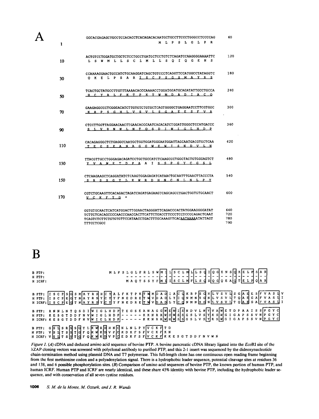Pancreatic thread protein (PTP) is a major exocrine secretory protein that in vitro forms filamentous bundles reminiscent of the paired helical filaments of Alzheimer's disease (AD). We previously described increased PTP immunoreactivity in AD brains and now report high levels in the developing human brain. Using a full-length cloned bovine PTP cDNA and synthetic oligonucleotides corresponding to human PTP cDNA, which is identical to human islet cell regeneration factor, we analyzed the expression of PTP in pancreas and brain. A major 0.9-kb as well as several minor transcripts were identified in human pancreas. In AD brain, the same size transcripts were detected by Northern analysis, primer extension assay, or polymerase chain reaction amplification of cDNAs generated by reverse transcriptase assay. There were significantly higher levels of PTP mRNA in brains with AD compared with aged controls, with increased amounts of 1.2-, 0.6-, and 0.4-kb transcripts by Northern analysis. In situ hybridization localized expression to pyramidal neurons in the cerebral cortex, the same population that contains neurofibrillary tangles and high levels of immunoreactive PTP. These findings suggest that AD is associated with enhanced expression of PTP-related transcripts with intraneuronal accumulation of PTP-like proteins.