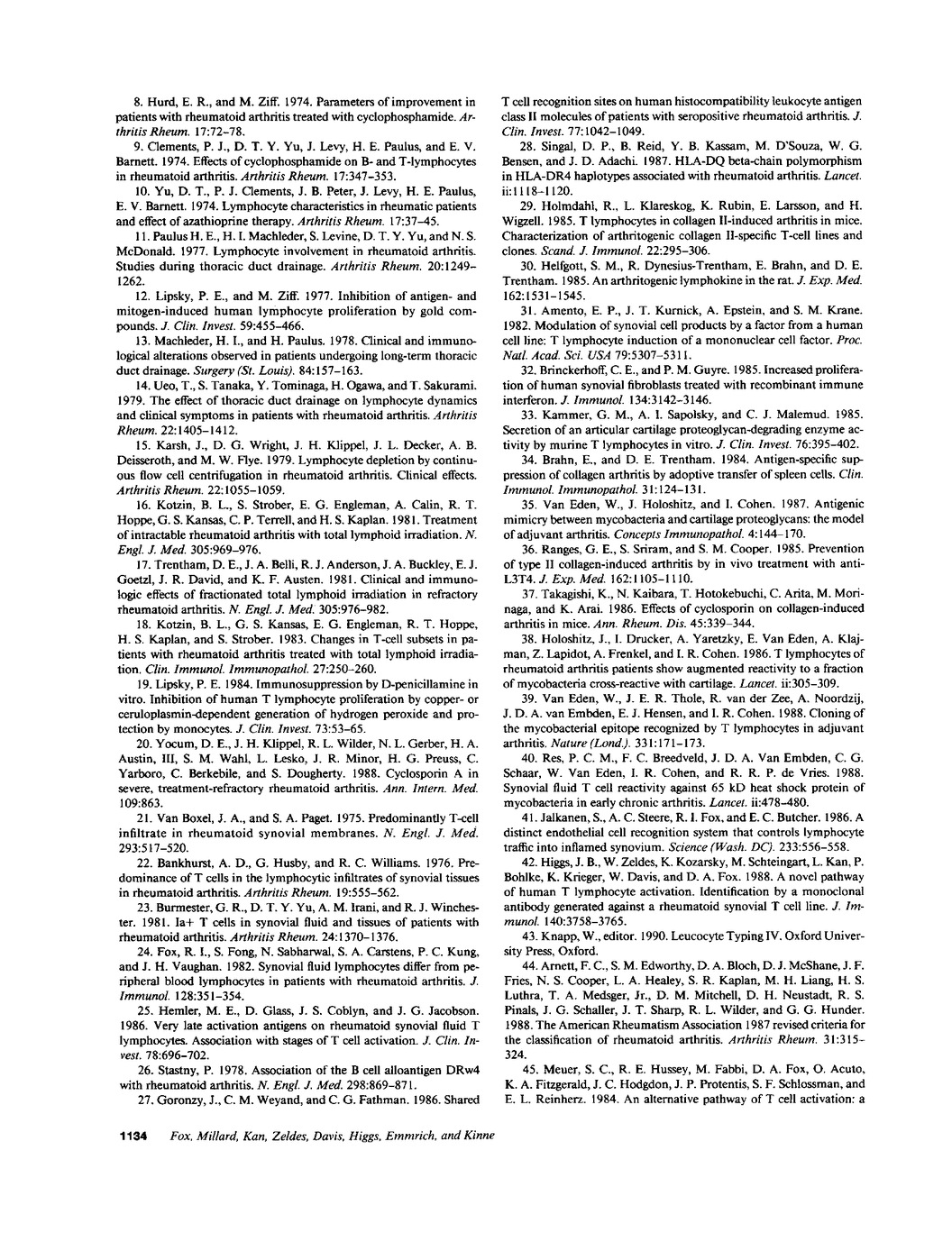 D A Fox, J A Millard, L Kan, W S Zeldes, W Davis, J Higgs, F Emmrich, R W Kinne