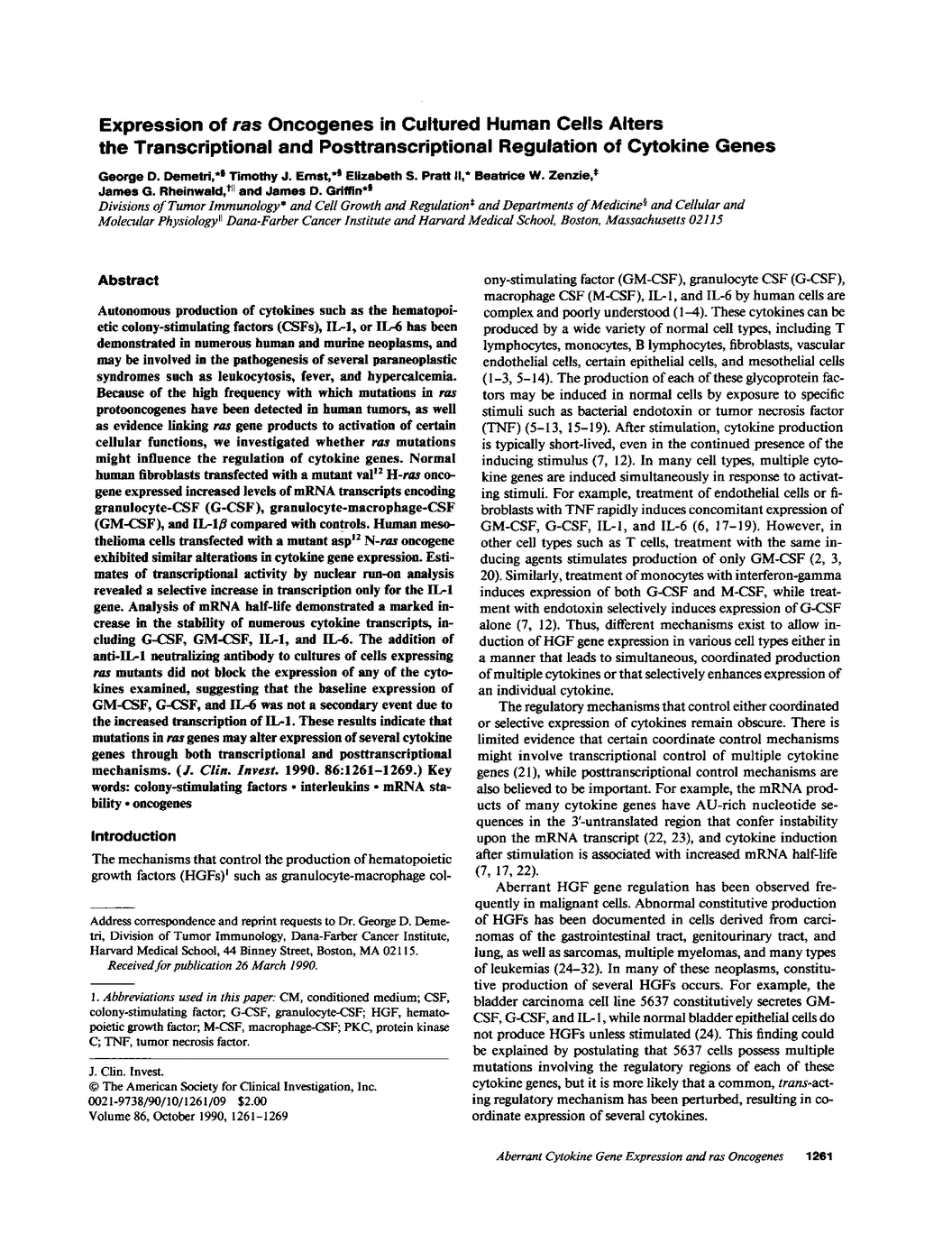 G D Demetri, T J Ernst, E S Pratt 2nd, B W Zenzie, J G Rheinwald, J D Griffin
