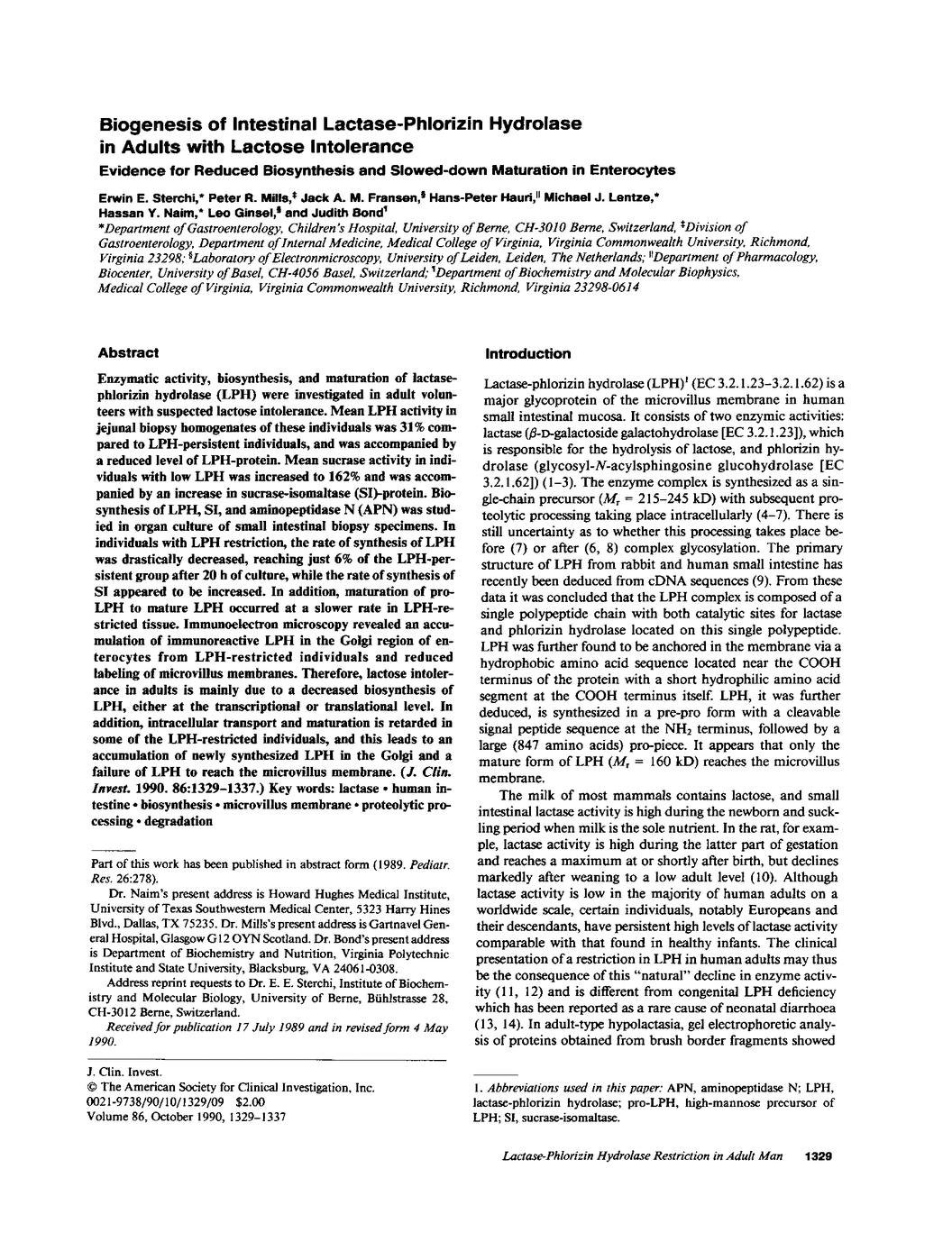 E E Sterchi, P R Mills, J A Fransen, H P Hauri, M J Lentze, H Y Naim, L Ginsel, J Bond