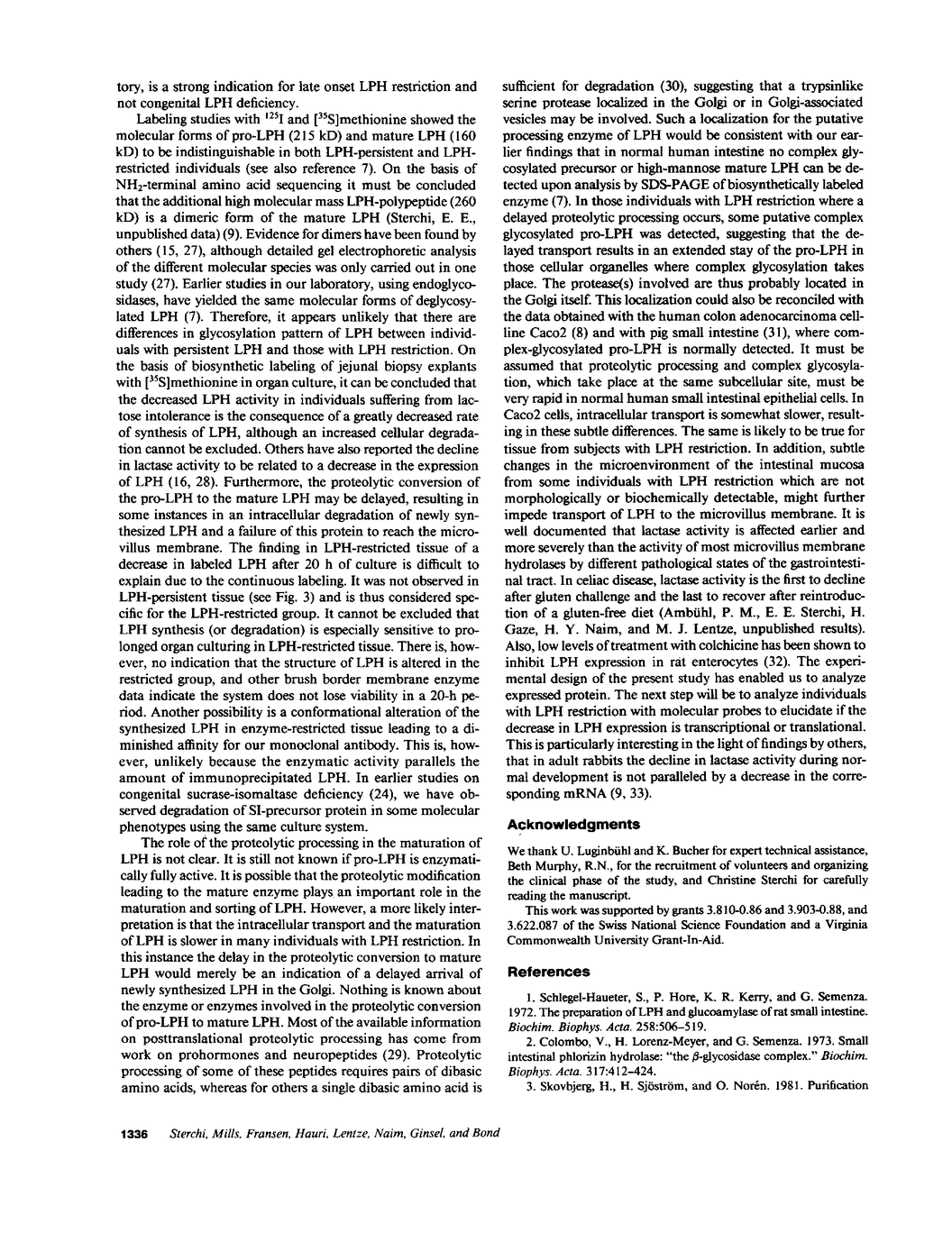 E E Sterchi, P R Mills, J A Fransen, H P Hauri, M J Lentze, H Y Naim, L Ginsel, J Bond