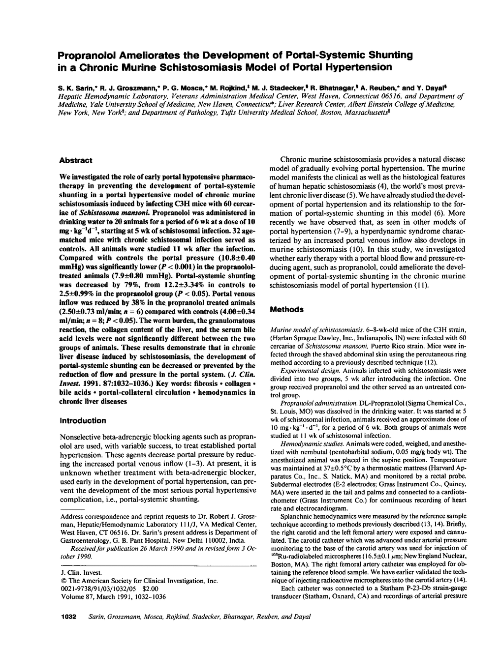 S K Sarin, R J Groszmann, P G Mosca, M Rojkind, M J Stadecker, R Bhatnagar, A Reuben, Y Dayal