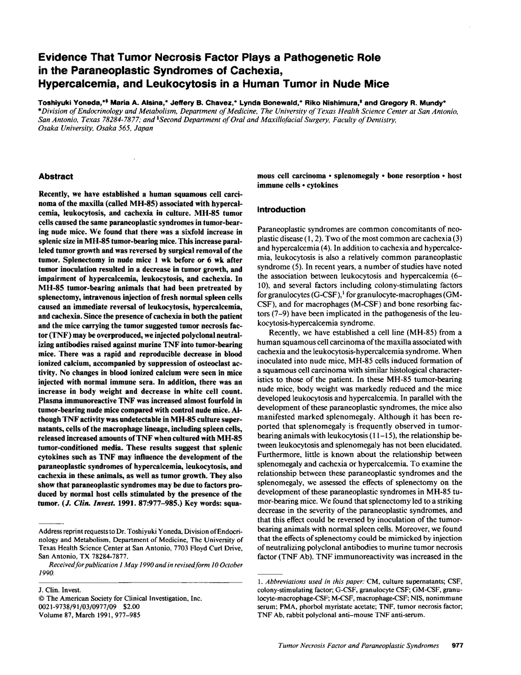 T Yoneda, M A Alsina, J B Chavez, L Bonewald, R Nishimura, G R Mundy
