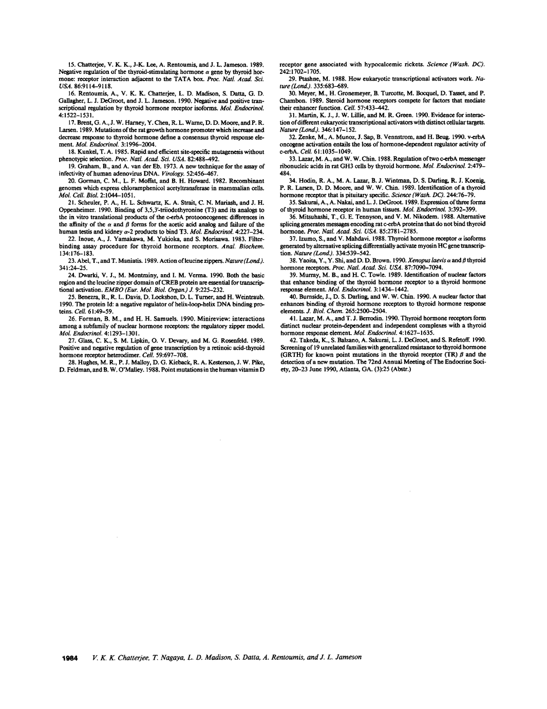 V K Chatterjee, T Nagaya, L D Madison, S Datta, A Rentoumis, J L Jameson