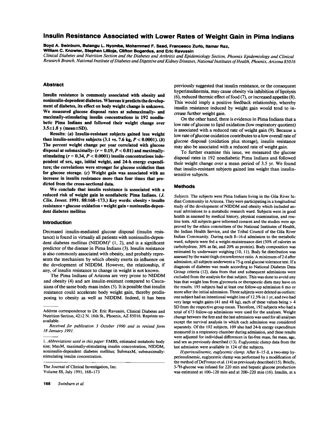B A Swinburn, B L Nyomba, M F Saad, F Zurlo, I Raz, W C Knowler, S Lillioja, C Bogardus, E Ravussin