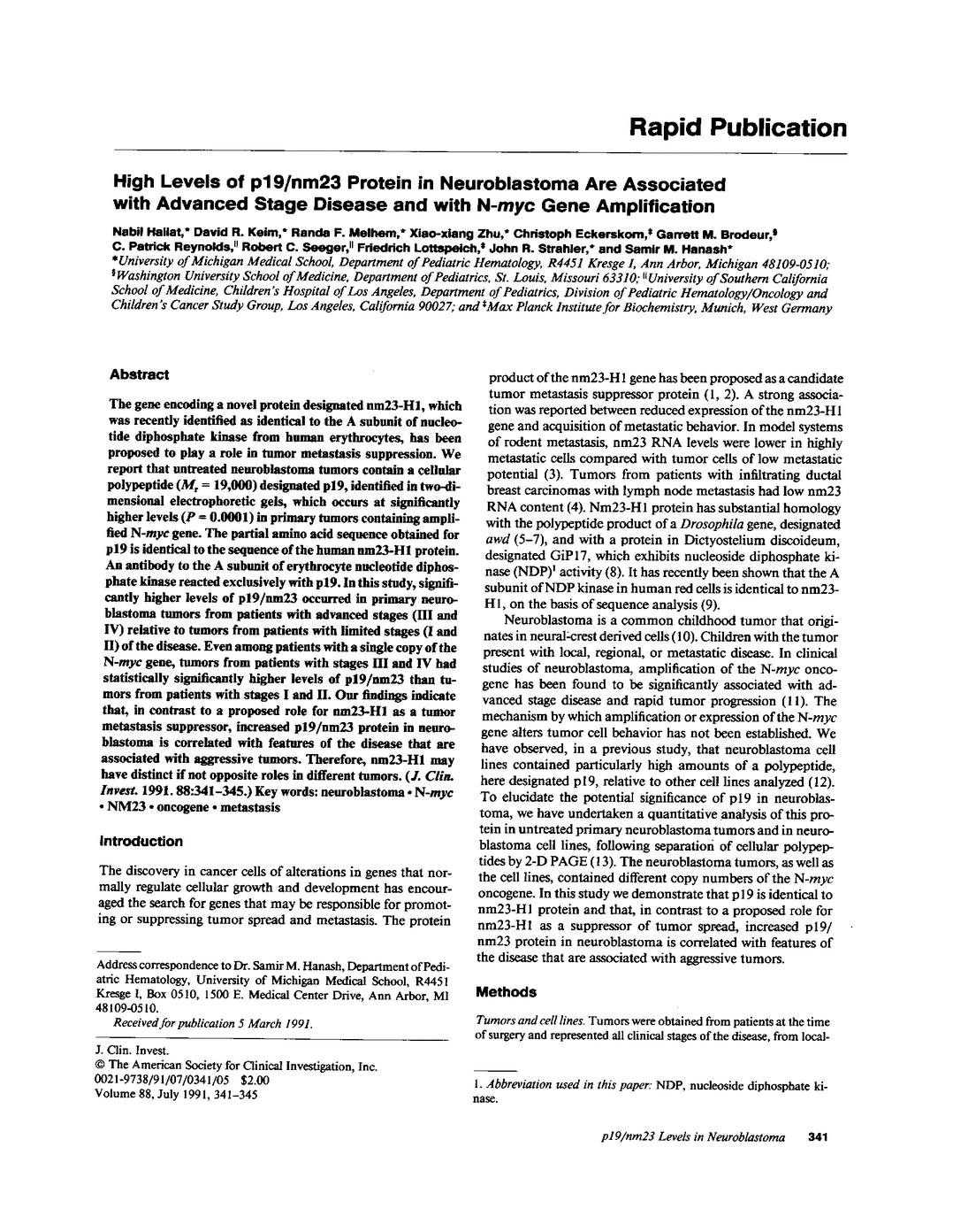 N Hailat, D R Keim, R F Melhem, X X Zhu, C Eckerskorn, G M Brodeur, C P Reynolds, R C Seeger, F Lottspeich, J R Strahler
