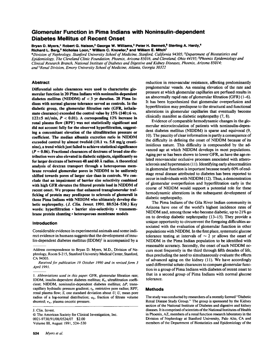 B D Myers, R G Nelson, G W Williams, P H Bennett, S A Hardy, R L Berg, N Loon, W C Knowler, W E Mitch