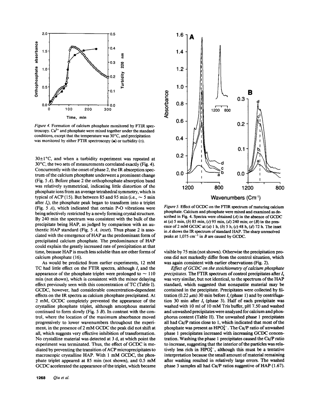 Calcium hydroxyapatite can be a significant component of black pigment gallstones. Diverse molecules that bind calcium phosphate inhibit hydroxyapatite precipitation. Because glycine-conjugated bile acids, but not their taurine counterparts, bind calcium phosphate, we studied whether glycochenodeoxycholic acid inhibits calcium hydroxyapatite formation. Glycochenodeoxycholic acid (2 mM) totally inhibited transformation of amorphous calcium phosphate microprecipitates to macroscopic crystalline calcium hydroxyapatite. This inhibition was not mediated by decreased Ca2+ activity. Taurocholic acid (2-12 mM) did not affect hydroxyapatite formation, but antagonized glycochenodeoxycholic acid. Both amorphous and crystalline precipitates contained a surface fraction relatively rich in phosphate. The surface phosphate content was diminish by increasing glycochenodeoxycholic acid concentrations, and this relationship was interpreted as competition between bile acid and HPO4(-4) for binding sites on the calcium phosphate surface. A phosphate-rich crystal surface was associated with rapid transition from amorphous to crystalline states. These results indicate that glycochenodeoxycholic acid prevents transformation of amorphous calcium phosphate to crystalline hydroxyapatite by competitively inhibiting the accumulation of phosphate on the crystal embryo surface.