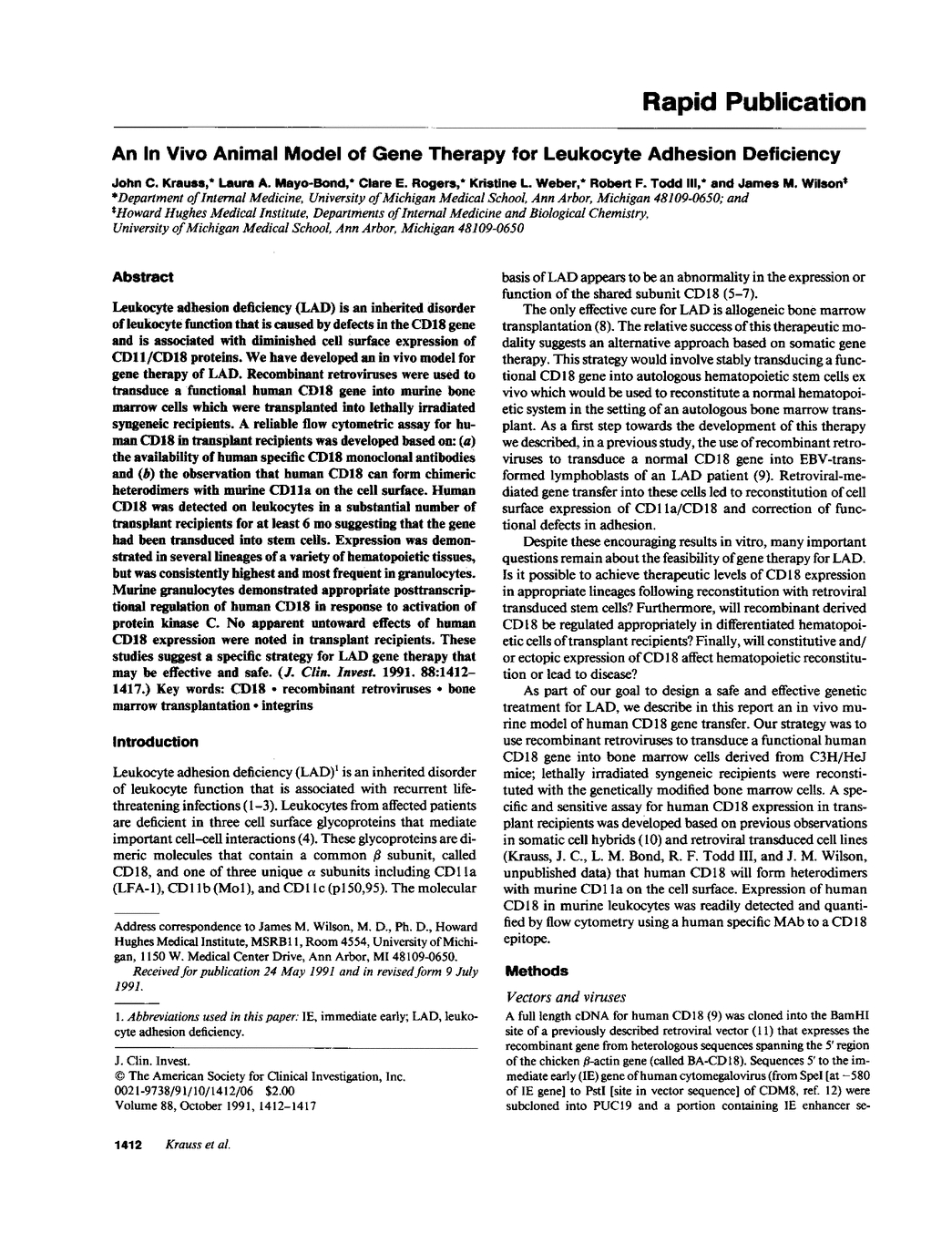 J C Krauss, L A Mayo-Bond, C E Rogers, K L Weber, R F Todd 3rd, J M Wilson