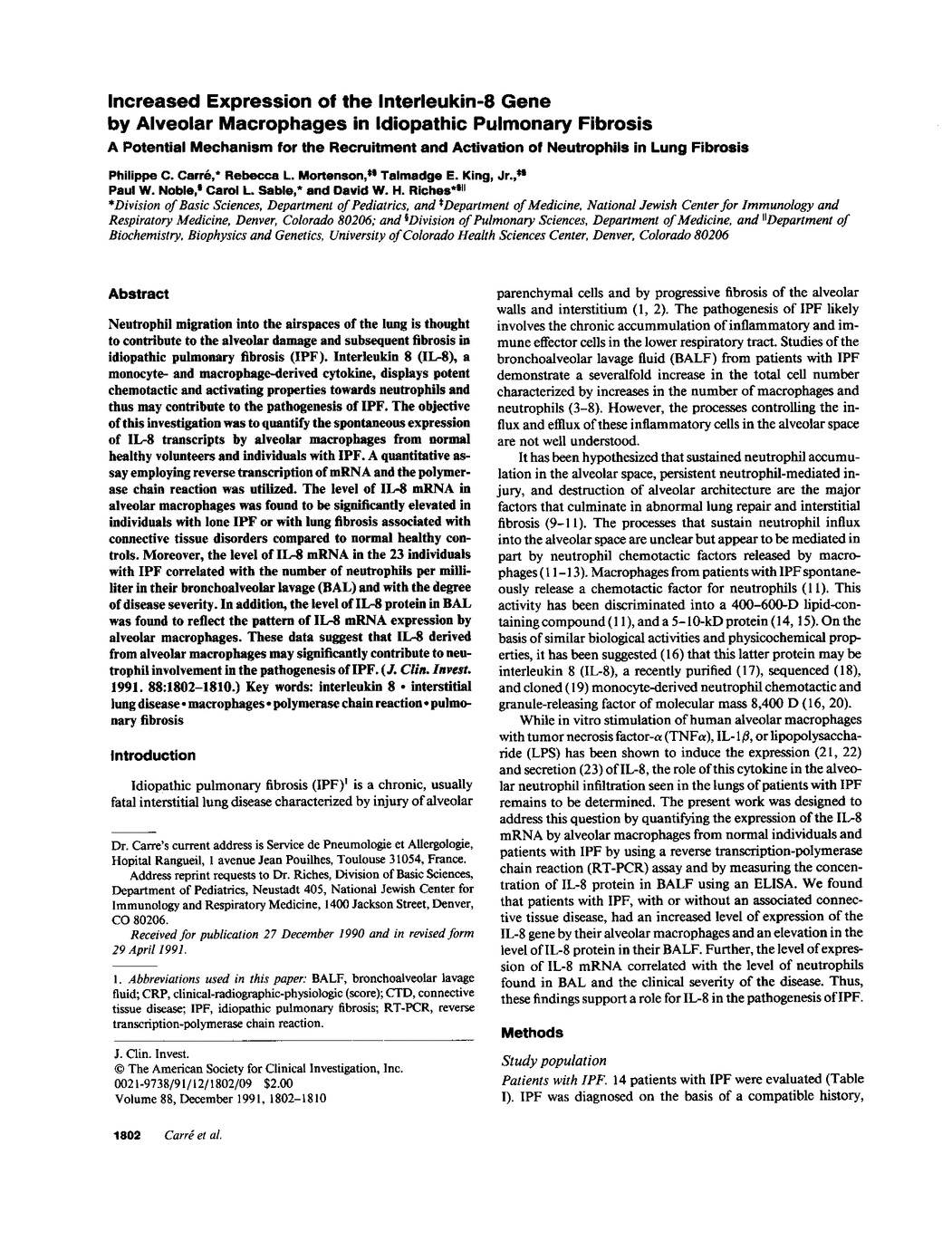 P C Carré, R L Mortenson, T E King Jr, P W Noble, C L Sable, D W Riches