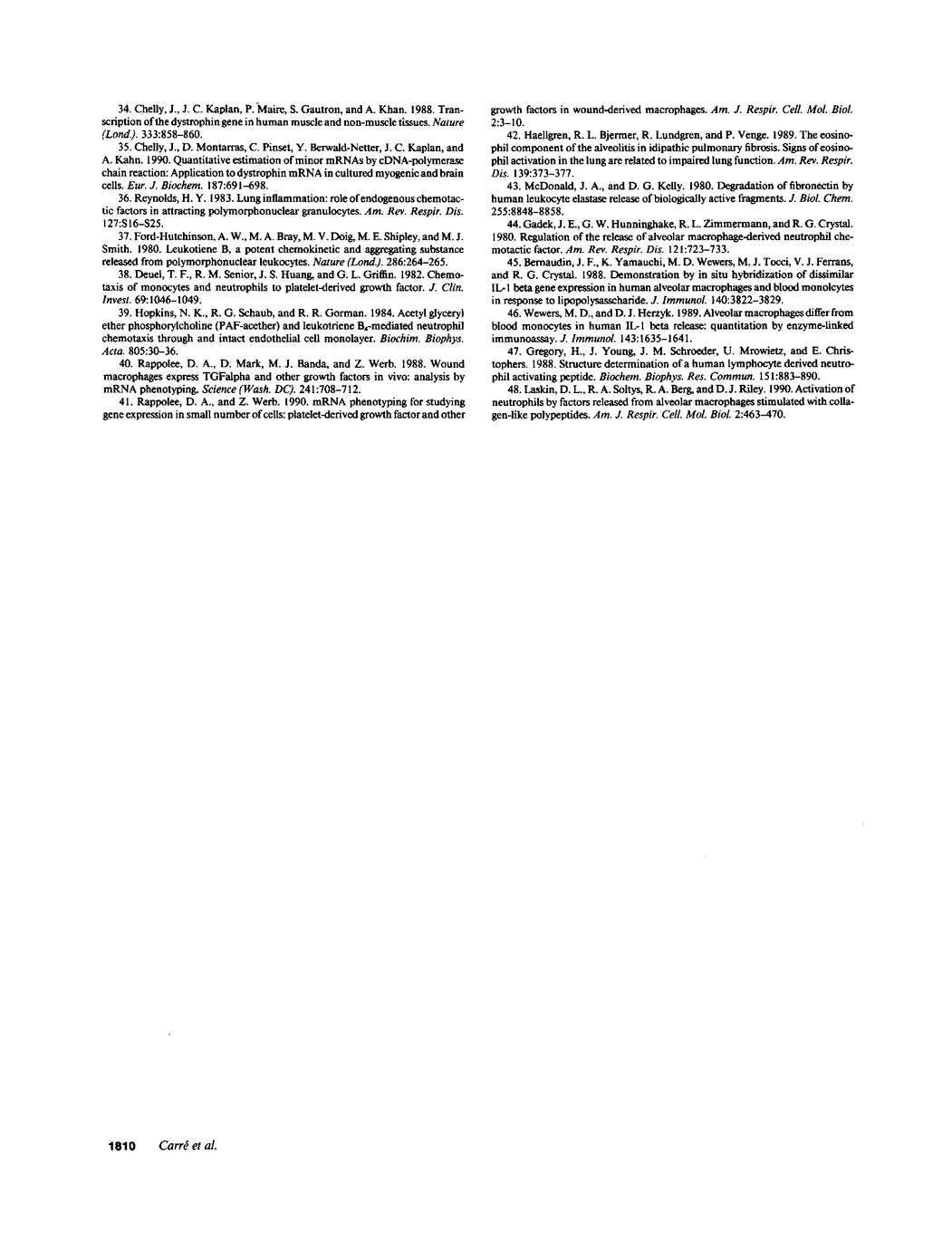 Neutrophil migration into the airspaces of the lung is thought to contribute to the alveolar damage and subsequent fibrosis in idiopathic pulmonary fibrosis (IPF). Interleukin 8 (IL-8), a monocyte- and macrophage-derived cytokine, displays potent chemotactic and activating properties towards neutrophils and thus may contribute to the pathogenesis of IPF. The objective of this investigation was to quantify the spontaneous expression of IL-8 transcripts by alveolar macrophages from normal healthy volunteers and individuals with IPF. A quantitative assay employing reverse transcription of mRNA and the polymerase chain reaction was utilized. The level of IL-8 mRNA in alveolar macrophages was found to be significantly elevated in individuals with lone IPF or with lung fibrosis associated with connective tissue disorders compared to normal healthy controls. Moreover, the level of IL-8 mRNA in the 23 individuals with IPF correlated with the number of neutrophils per milliliter in their bronchoalveolar lavage (BAL) and with the degree of disease severity. In addition, the level of IL-8 protein in BAL was found to reflect the pattern of IL-8 mRNA expression by alveolar macrophages. These data suggest that IL-8 derived from alveolar macrophages may significantly contribute to neutrophil involvement in the pathogenesis of IPF.