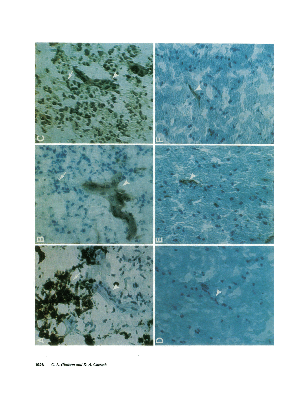 Glioblastoma multiforme, the most malignant astroglial-derived tumor, grows as an adherent mass and locally invades normal brain. An examination of adult cerebral glioblastoma biopsy material for the expression of adhesive proteins that might potentiate adhesion and invasion demonstrated tumor cell-associated vitronectin (5/5). In contrast, vitronectin was not detected associated with glial cells in low grade astroglial tumors (0/4), reactive astrogliosis (0/4), or in normal adult cortex and cerebral white matter (0/5). Also, a wide variety of other adhesive ligands were absent from the glioblastoma tumor parenchyma. The alpha v beta 3 integrin was the only vitronectin receptor identified in glioblastoma tumors in situ, and was also not expressed on low grade astroglial-derived tumors, reactive astrogliosis, or on glia or neurons in normal adult cortex and cerebral white matter. In a cell attachment assay, cultured glioblastoma cells attached to the parenchyma of glioblastoma tumor cryostat sections at the sites of vitronectin expression, but failed to attach to normal brain. This adhesion was inhibited by antibodies directed against vitronectin, the alpha v beta 3 integrin, and with an Arg-Gly-Asp-containing peptide. These data provide evidence for a cell adhesion mechanism in glioblastoma tumors that might potentiate glioblastoma cell invasion of normal brain.