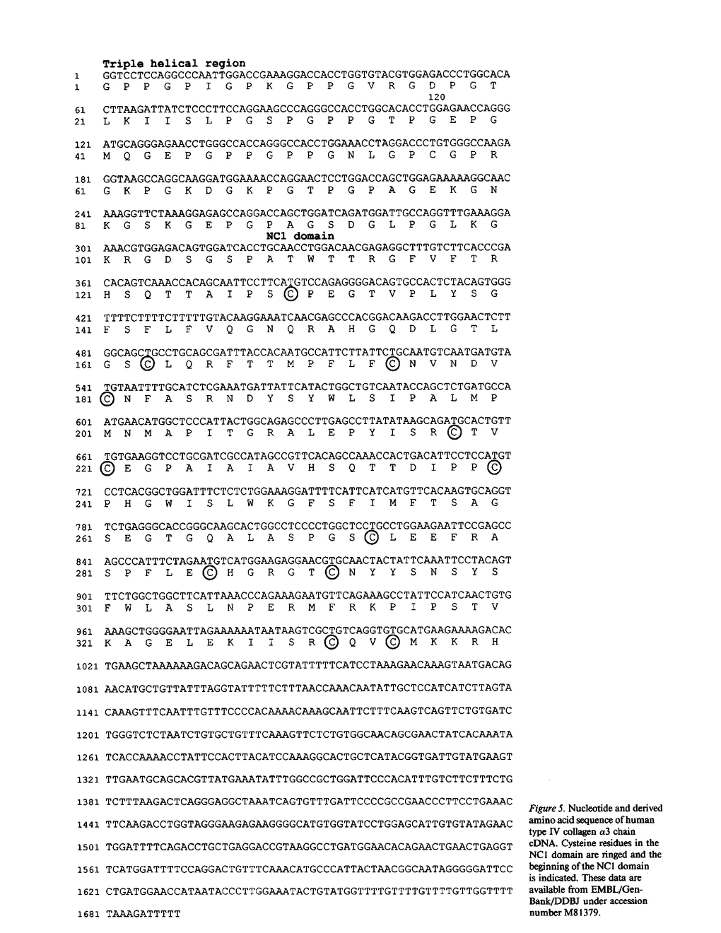 To characterize the autoantigen of Goodpasture's (anti-glomerular basement membrane) disease, a molecule of 26-kD reactive with autoantibodies from patients' sera was purified from collagenase digests of sheep glomerular basement membrane. Short internal amino acid sequences were obtained after tryptic or cyanogen bromide cleavage, and used to deduce redundant oligonucleotides for use in the polymerase chain reaction on cDNA derived from sheep renal cortex. Molecules of 175 bp were amplified and found to come from two cDNA sequences. One was identical to that of a type IV collagen chain (alpha 5) cloned from human placenta and shown to be expressed in human kidney. The other was from a type IV collagen chain with close similarities to alpha 1 and alpha 5 chains, and was used to obtain human cDNA sequences by cDNA library screening and by further polymerase chain reaction amplifications. The correspondence of the derived amino acid sequence of the new chain with published protein and cDNA sequences shows it to be the alpha 3 chain of type IV collagen. Its gene, COL4A3, maps to 2q36-2q37. The primary sequence and other characteristics of this chain confirm that it carries the Goodpasture antigen.