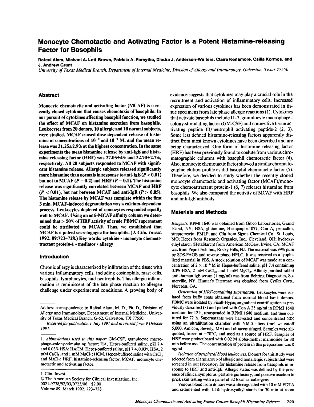 R Alam, M A Lett-Brown, P A Forsythe, D J Anderson-Walters, C Kenamore, C Kormos, J A Grant