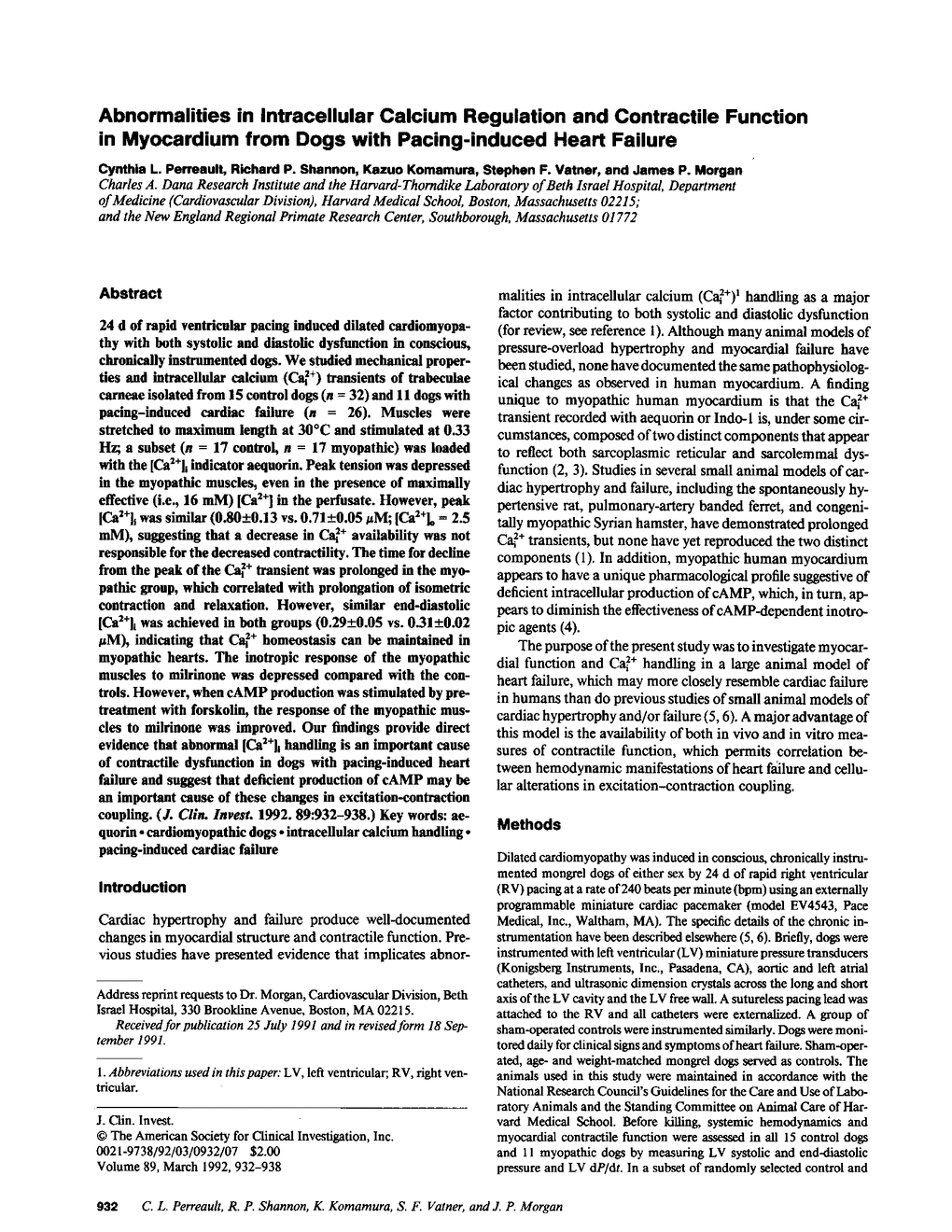 C L Perreault, R P Shannon, K Komamura, S F Vatner, J P Morgan
