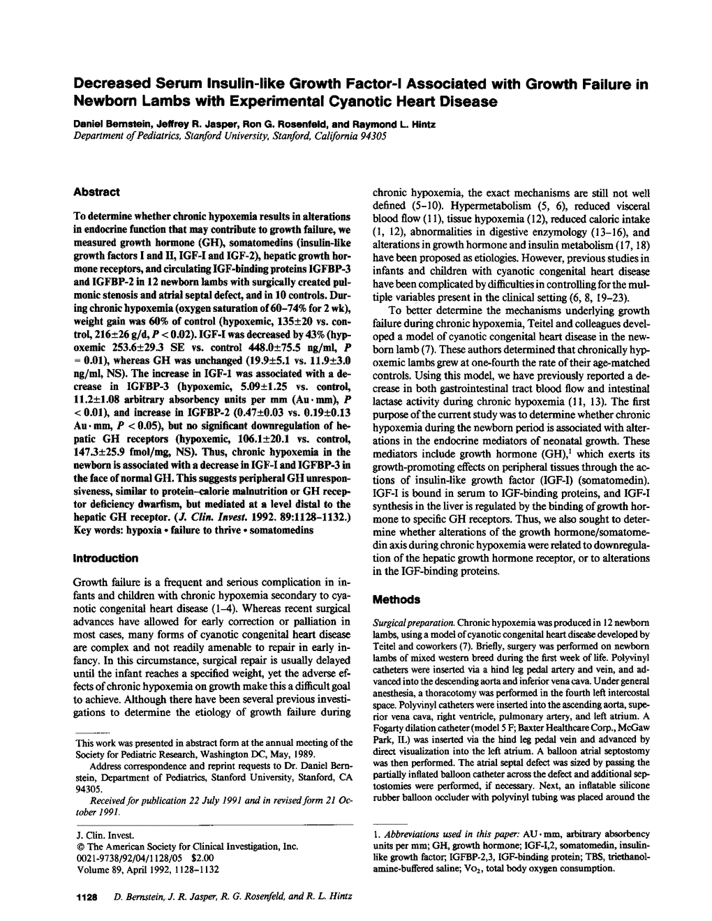 D Bernstein, J R Jasper, R G Rosenfeld, R L Hintz