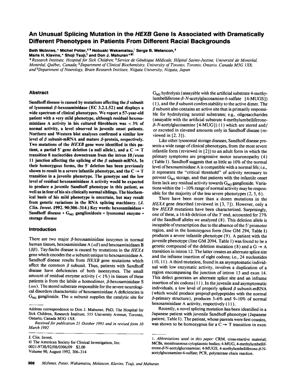 B McInnes, M Potier, N Wakamatsu, S B Melancon, M H Klavins, S Tsuji, D J Mahuran
