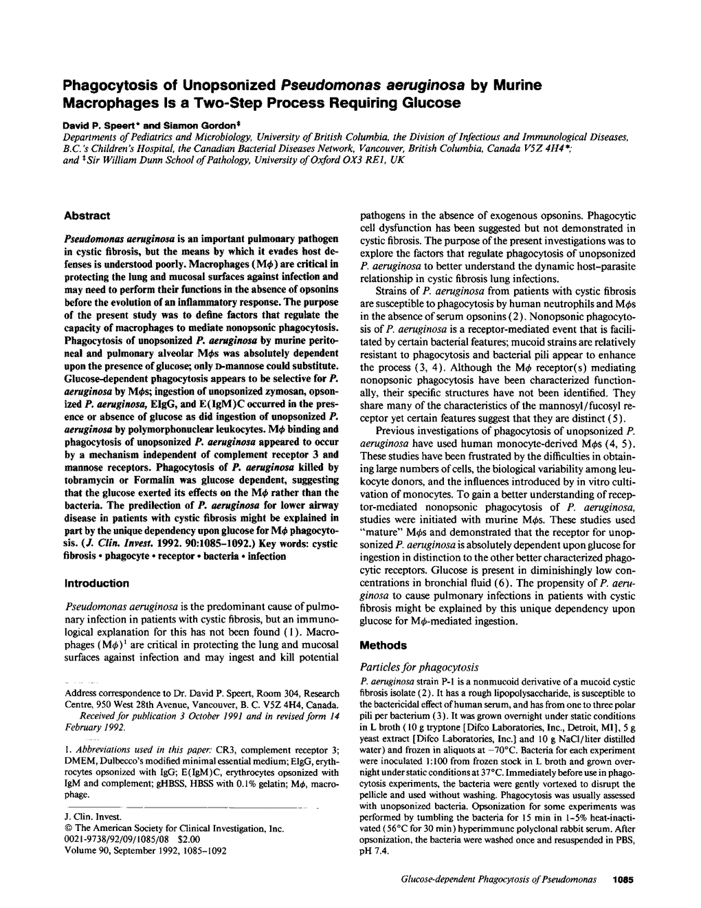 D P Speert, S Gordon