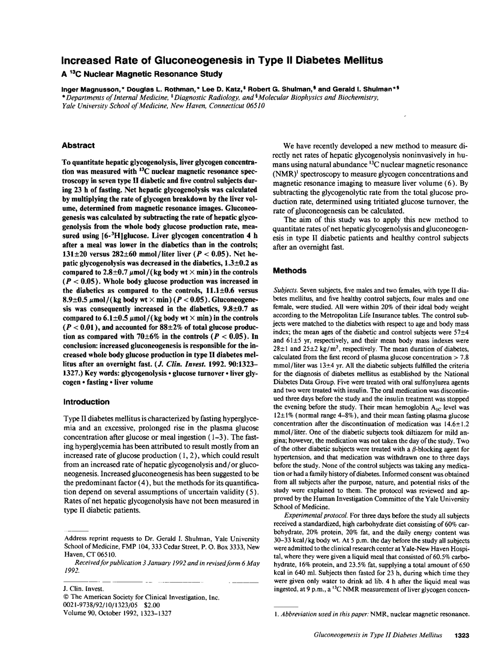 I Magnusson, D L Rothman, L D Katz, R G Shulman, G I Shulman