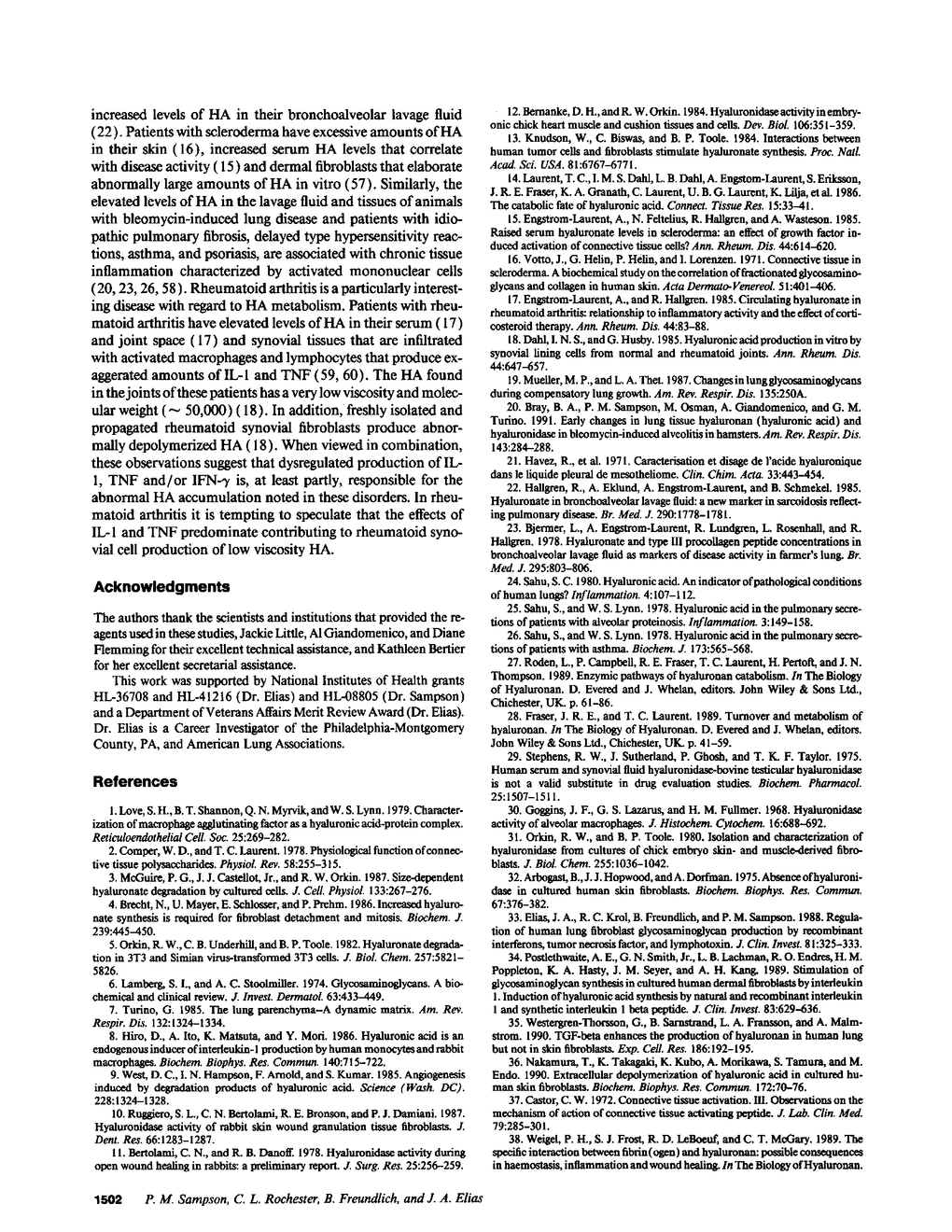 P M Sampson, C L Rochester, B Freundlich, J A Elias