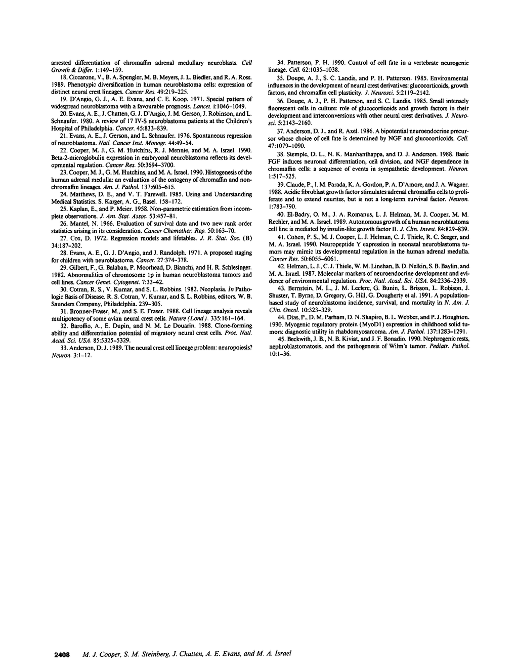 M J Cooper, S M Steinberg, J Chatten, A E Evans, M A Israel