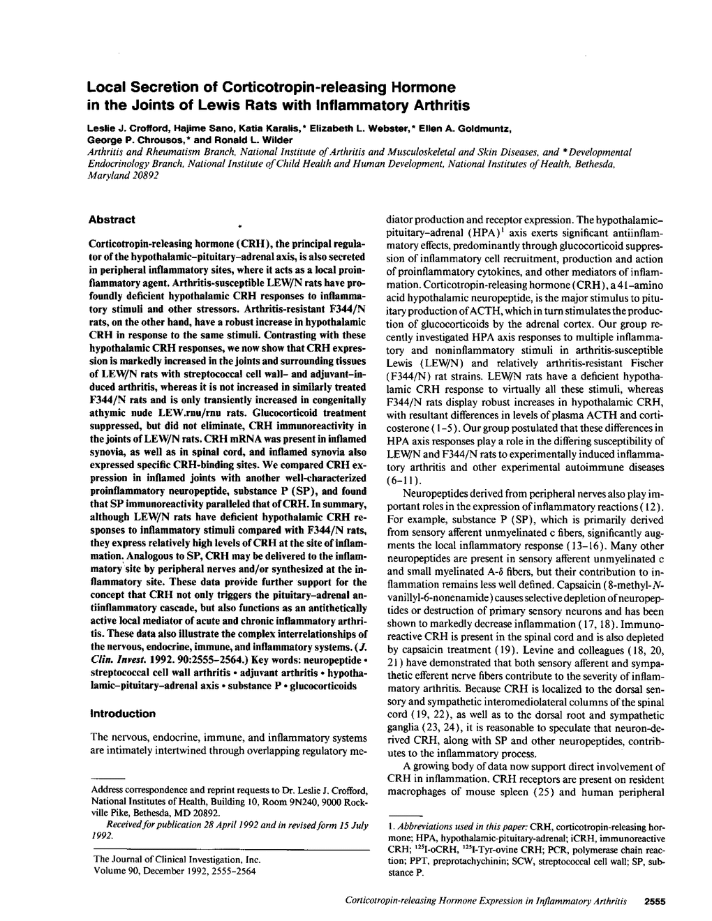 L J Crofford, H Sano, K Karalis, E L Webster, E A Goldmuntz, G P Chrousos, R L Wilder