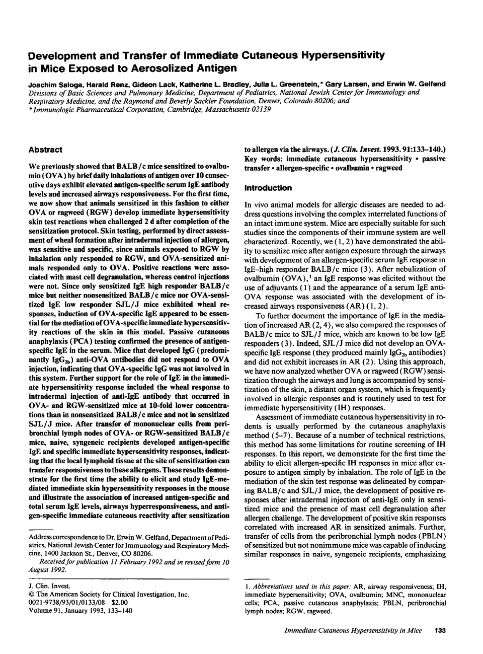 J Saloga, H Renz, G Lack, K L Bradley, J L Greenstein, G Larsen, E W Gelfand