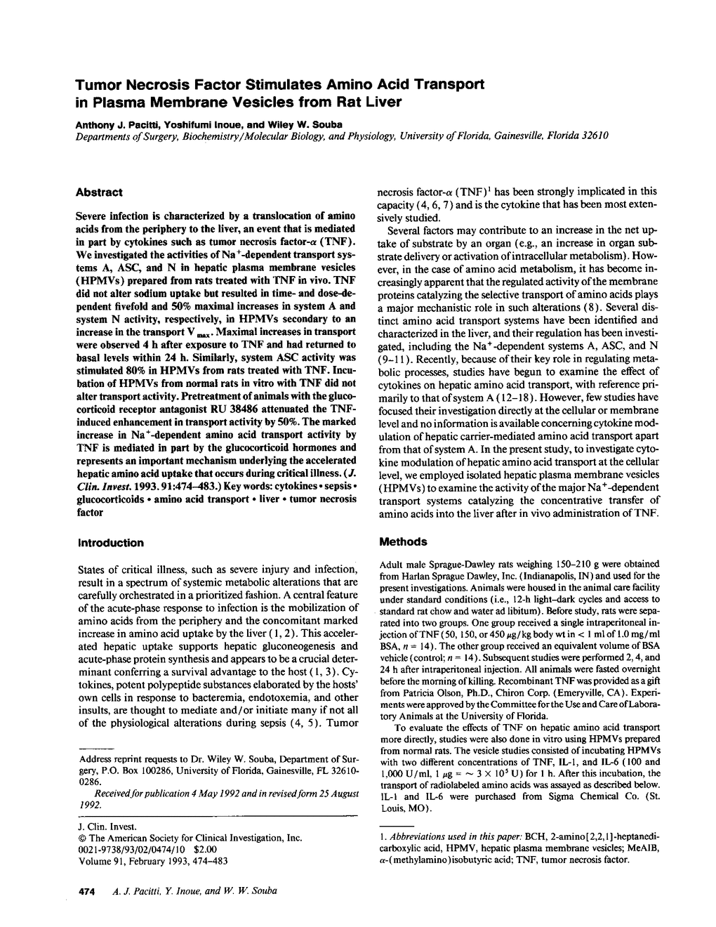 Severe infection is characterized by a translocation of amino acids from the periphery to the liver, an event that is mediated in part by cytokines such as tumor necrosis factor-alpha (TNF). We investigated the activities of Na(+)-dependent transport systems A, ASC, and N in hepatic plasma membrane vesicles (HPMVs) prepared from rats treated with TNF in vivo. TNF did not alter sodium uptake but resulted in time- and dose-dependent fivefold and 50% maximal increases in system A and system N activity, respectively, in HPMVs secondary to an increase in the transport Vmax. Maximal increases in transport were observed 4 h after exposure to TNF and had returned to basal levels within 24 h. Similarly, system ASC activity was stimulated 80% in HPMVs from rats treated with TNF. Incubation of HPMVs from normal rats in vitro with TNF did not alter transport activity. Pretreatment of animals with the glucocorticoid receptor antagonist RU 38486 attenuated the TNF-induced enhancement in transport activity by 50%. The marked increase in Na(+)-dependent amino acid transport activity by TNF is mediated in part by the glucocorticoid hormones and represents an important mechanism underlying the accelerated hepatic amino acid uptake that occurs during critical illness.