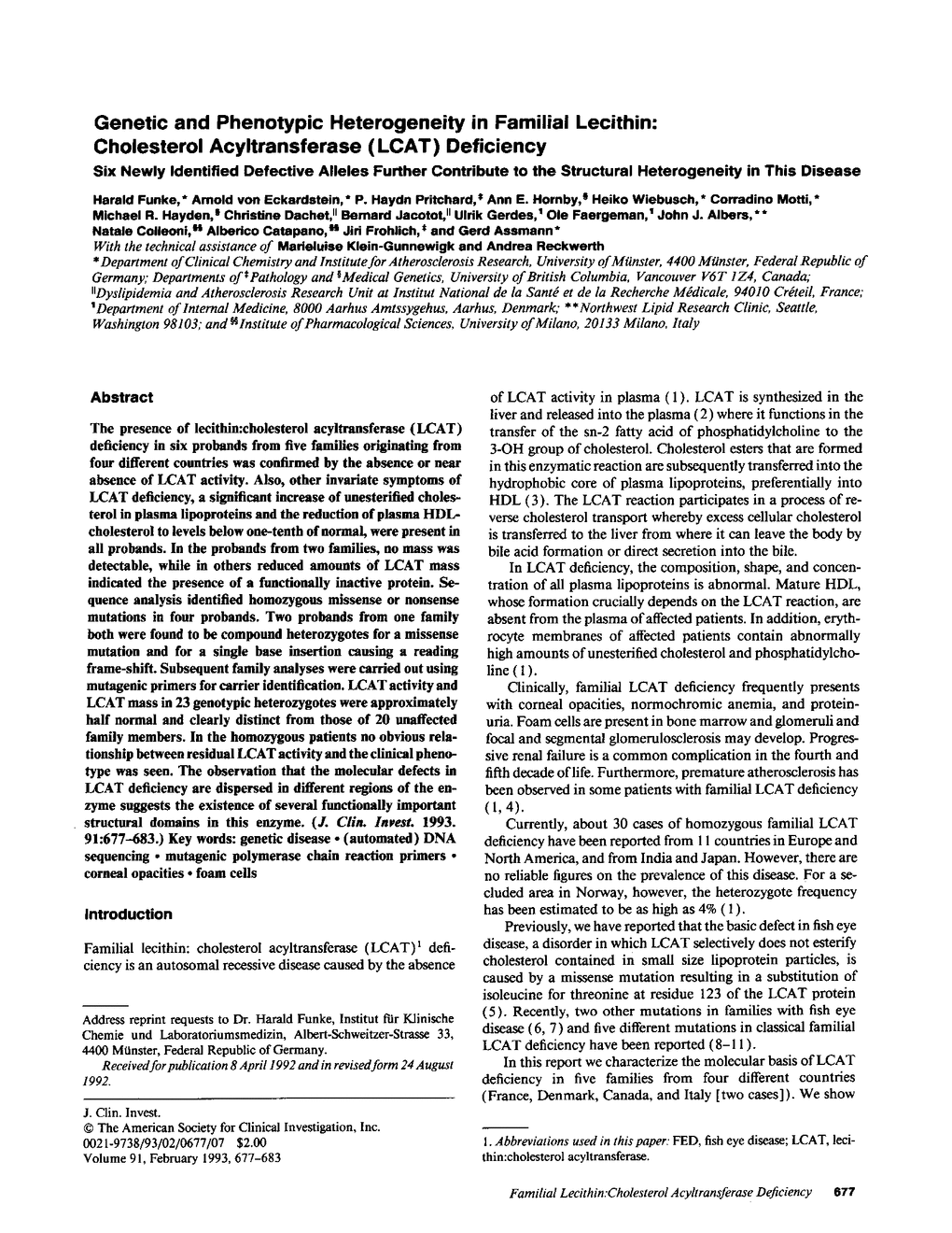 H Funke, A von Eckardstein, P H Pritchard, A E Hornby, H Wiebusch, C Motti, M R Hayden, C Dachet, B Jacotot, U Gerdes