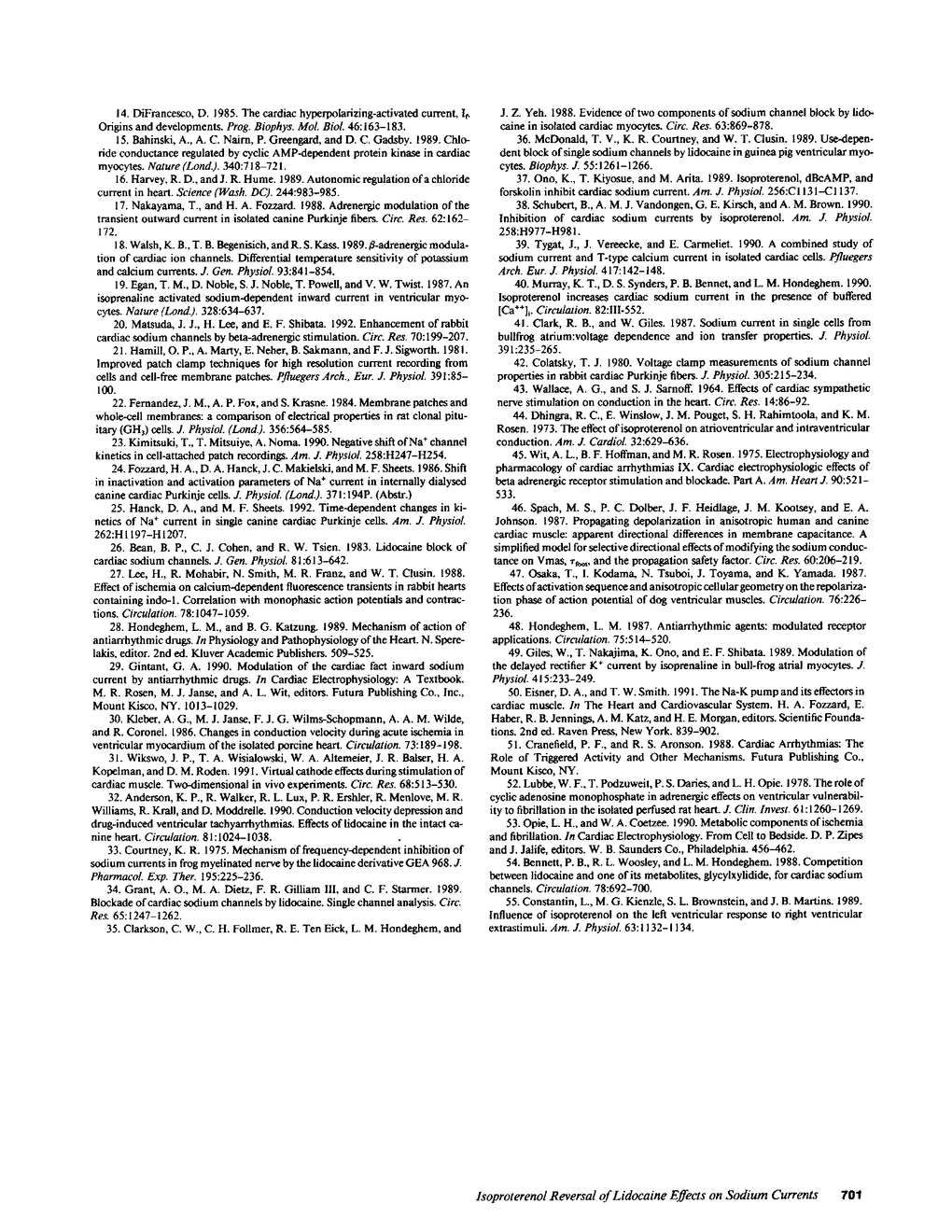 We demonstrated recently that isoproterenol enhanced the cardiac voltage-dependent sodium currents (INa) in rabbit ventricular myocytes through dual G-protein regulatory pathways. In this study, we tested the hypothesis that isoproterenol reverses the sodium channel blocking effects of class I antiarrhythmic drugs through modulation of INa. The experiments were performed in rabbit ventricular myocytes using whole-cell patch-clamp techniques. Reversal of lidocaine suppression of INa by isoproterenol (1 microM) was significant at various concentrations of lidocaine (20, 65, and 100 microM, P < 0.05). The effects of isoproterenol were voltage dependent, showing reversal of INa suppression by lidocaine at normal and hyperpolarized potentials (negative to -80 mV) but not at depolarized potentials. Isoproterenol enhanced sodium channel availability but did not alter the steady state activation or inactivation of INa nor did it improve sodium channel recovery in the presence of lidocaine. The physiological significance of the single cell INa findings were corroborated by measurements of conduction velocities using an epicardial mapping system in isolated rabbit hearts. Lidocaine (10 microM) significantly suppressed epicardial impulse conduction in both longitudinal (theta L, 0.430 +/- 0.024 vs. 0.585 +/- 0.001 m/s at baseline, n = 7, P < 0.001) and transverse (theta T, 0.206 +/- 0.012 vs. 0.257 +/- 0.014 m/s at baseline, n = 8, P < 0.001) directions. Isoproterenol (0.05 microM) significantly reversed the lidocaine effects with theta L of 0.503 +/- 0.027 m/s and theta T of 0.234 +/- 0.015 m/s (P = 0.014 and 0.004 compared with the respective lidocaine measurements). These results suggest that enhancement of INa is an important mechanism by which isoproterenol reverses the effects of class I antiarrhythmic drugs.