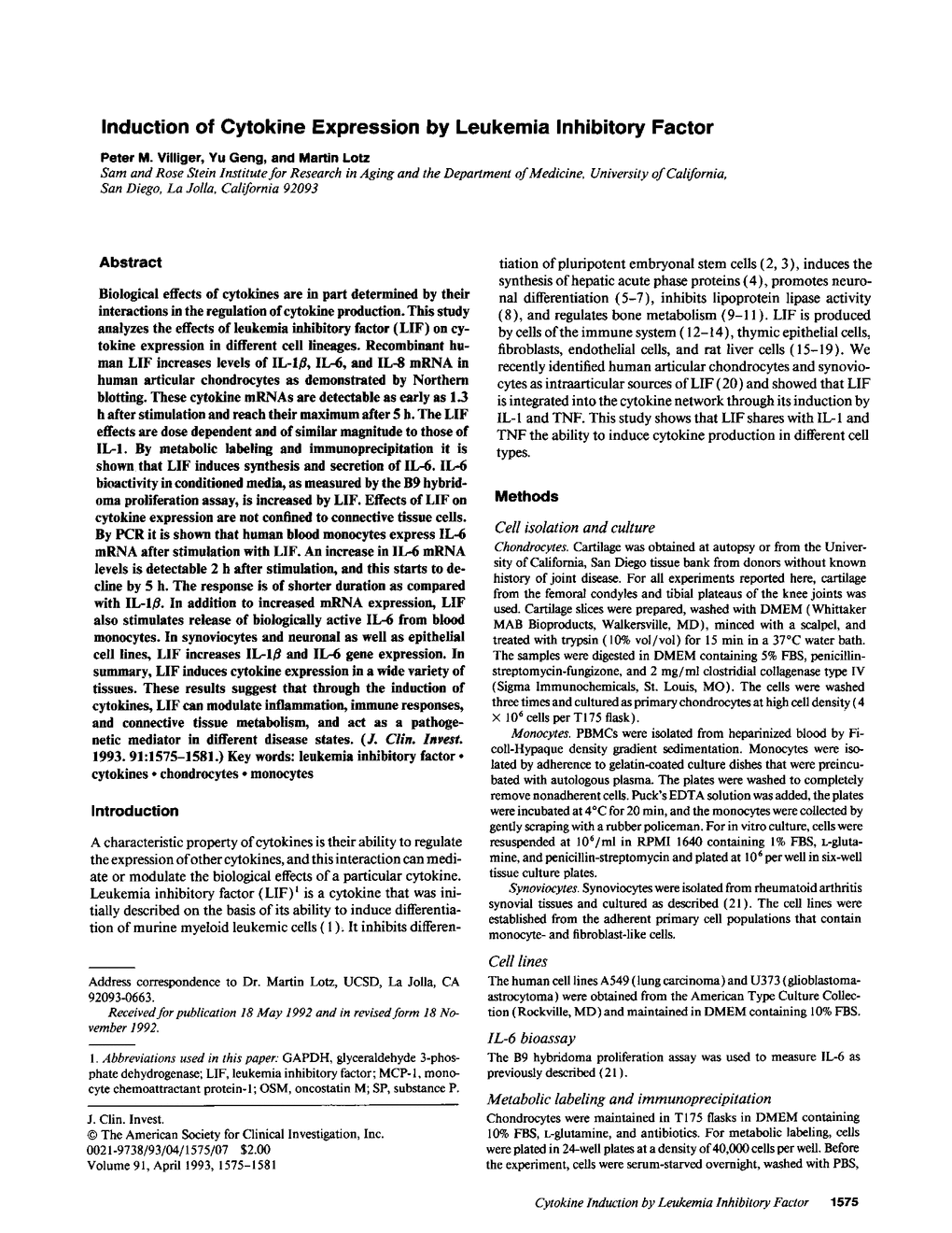 P M Villiger, Y Geng, M Lotz