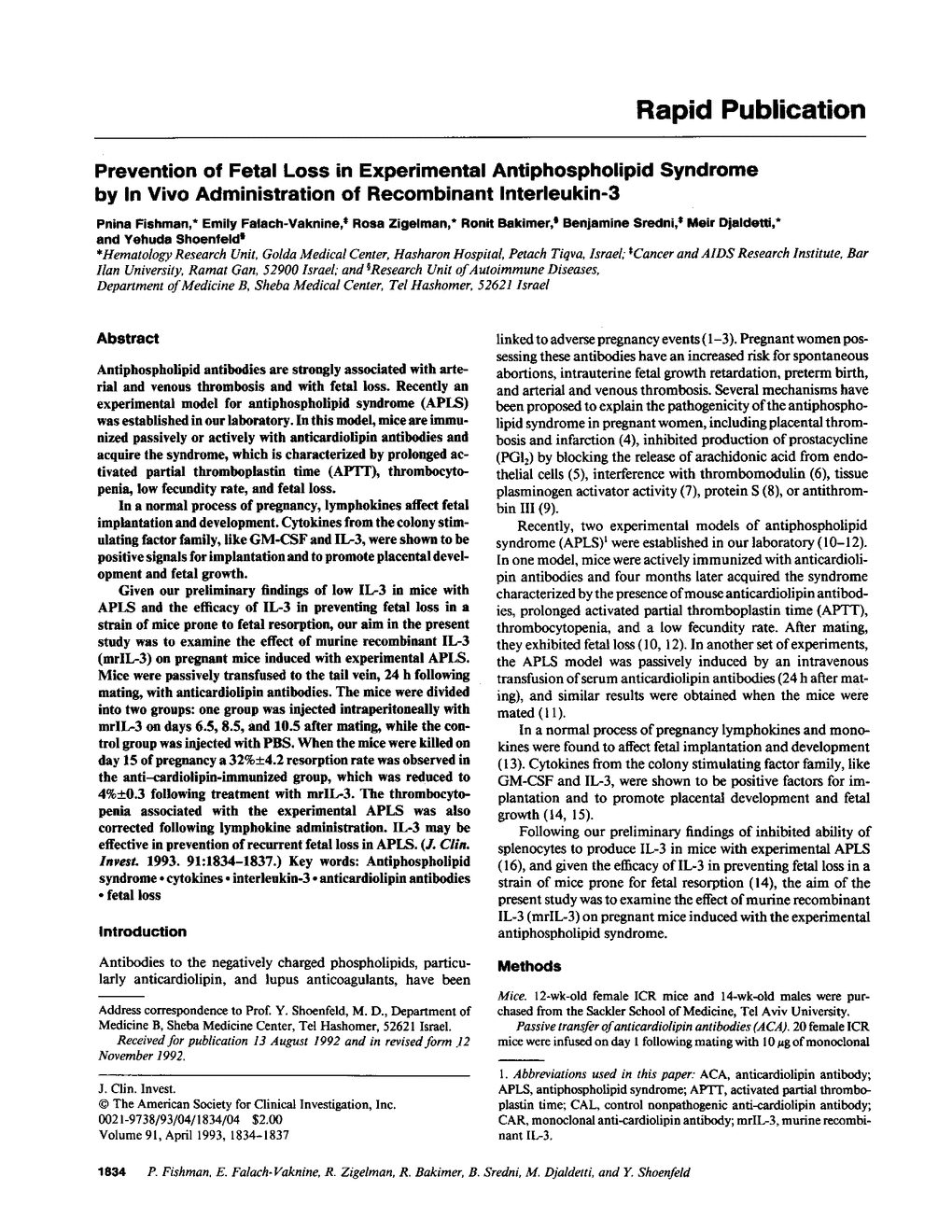 P Fishman, E Falach-Vaknine, R Zigelman, R Bakimer, B Sredni, M Djaldetti, Y Shoenfeld