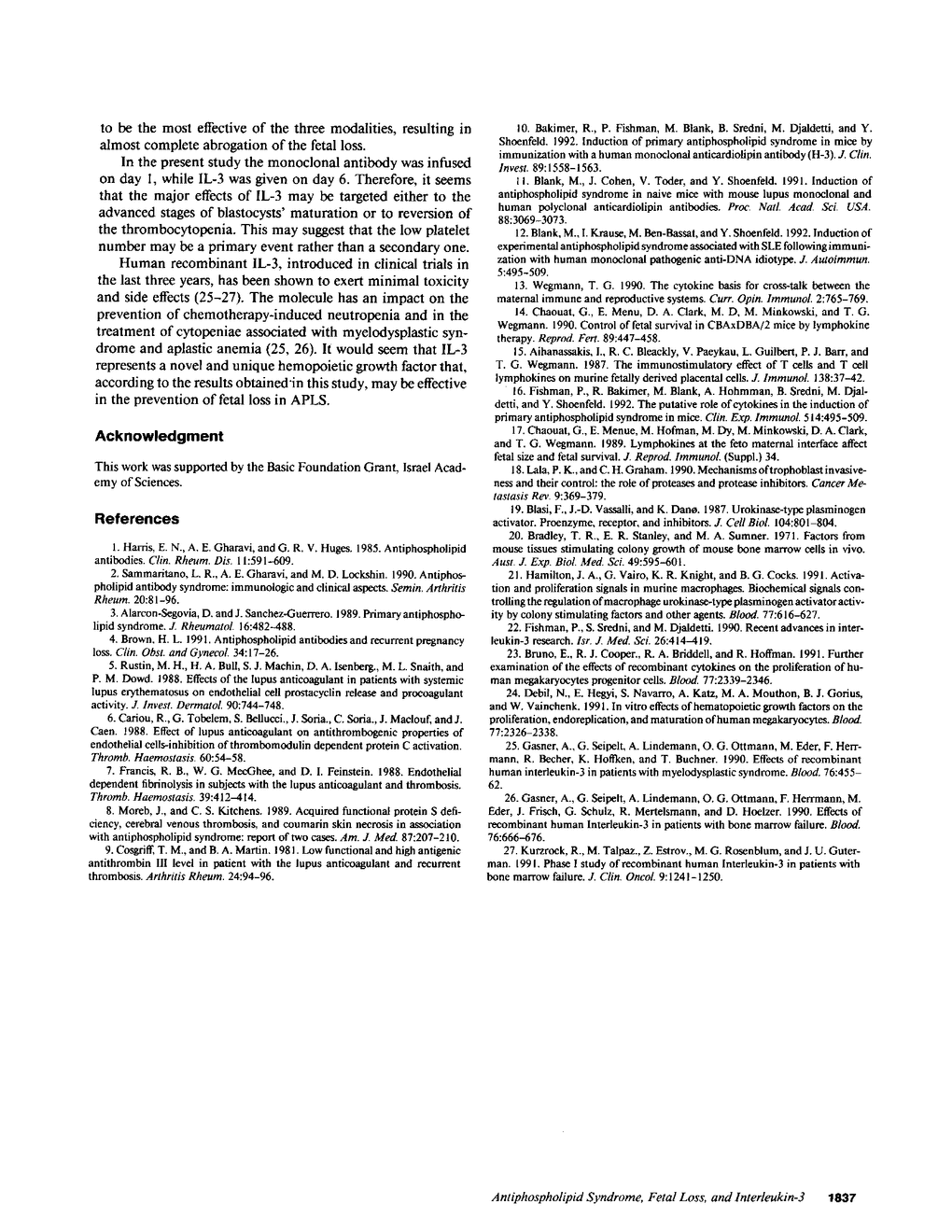 Prevention of fetal loss in experimental antiphospholipid syndrome by in vivo administration of recombinant interleukin-3.