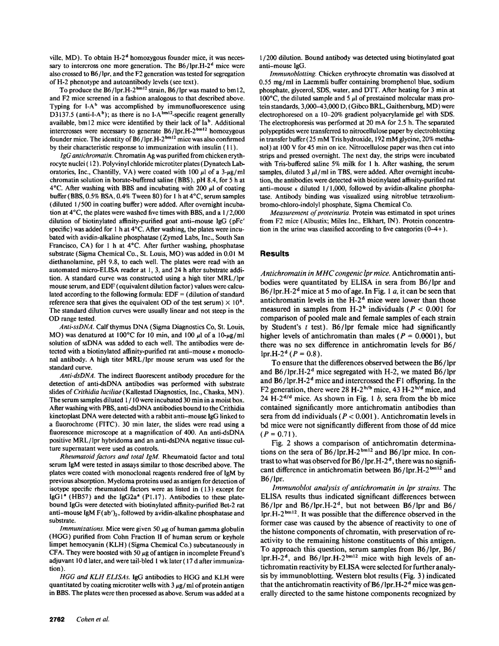 MHC-linked genes strongly influence susceptibility to autoimmune diseases and also regulate responses to exogenous antigens. To begin to understand the mechanism of this MHC effect on disease, we have investigated MHC-congenic mouse strains that develop spontaneous autoimmunity because of the lpr gene. C57BL6/lpr (B6/lpr) mice (H-2b) are known to have substantial levels of autoantibodies to chromatin, single stranded DNA (ssDNA3), and IgG of different murine subclasses (rheumatoid factor). We have crossed the H-2d and the H-2bm12 (la mutant) haplotypes onto the B6/lpr background. Surprisingly, levels of all the autoantibodies were markedly lower in B6/lpr.H-2d, but levels in B6/lpr.H-2bm12 were no different from those in B6/lpr mice. The downregulating influence of the H-2d allele was dominant, and there was no effect on autoantibody fine specificities. The genetics of the H-2d effect and its diffuse influence on multiple autoantibody specificities, in addition to the lack of effect of the bm12 mutation, which modifies the peptide-binding groove of I-A, together raise the question of whether MHC-linked genes other than classical (IR) genes may be responsible for MHC disease associations in this model.