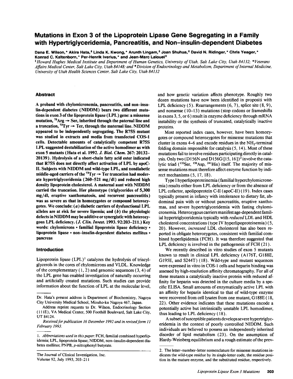 D E Wilson, A Hata, L K Kwong, A Lingam, J Shuhua, D N Ridinger, C Yeager, K C Kaltenborn, P H Iverius, J M Lalouel