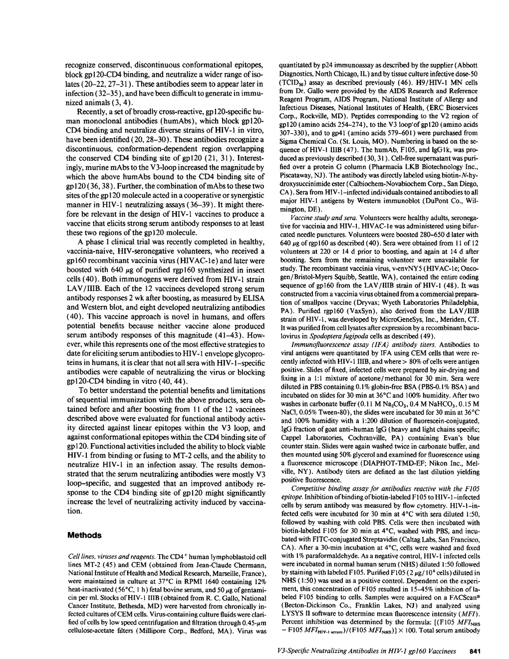 V3-specific neutralizing antibodies in sera from HIV-1 gp160-immunized volunteers block virus fusion and act synergistically with human monoclonal antibody to the conformation-dependent CD4 binding site of gp120. NIH-NIAID AIDS Vaccine Clinical Trials Network.