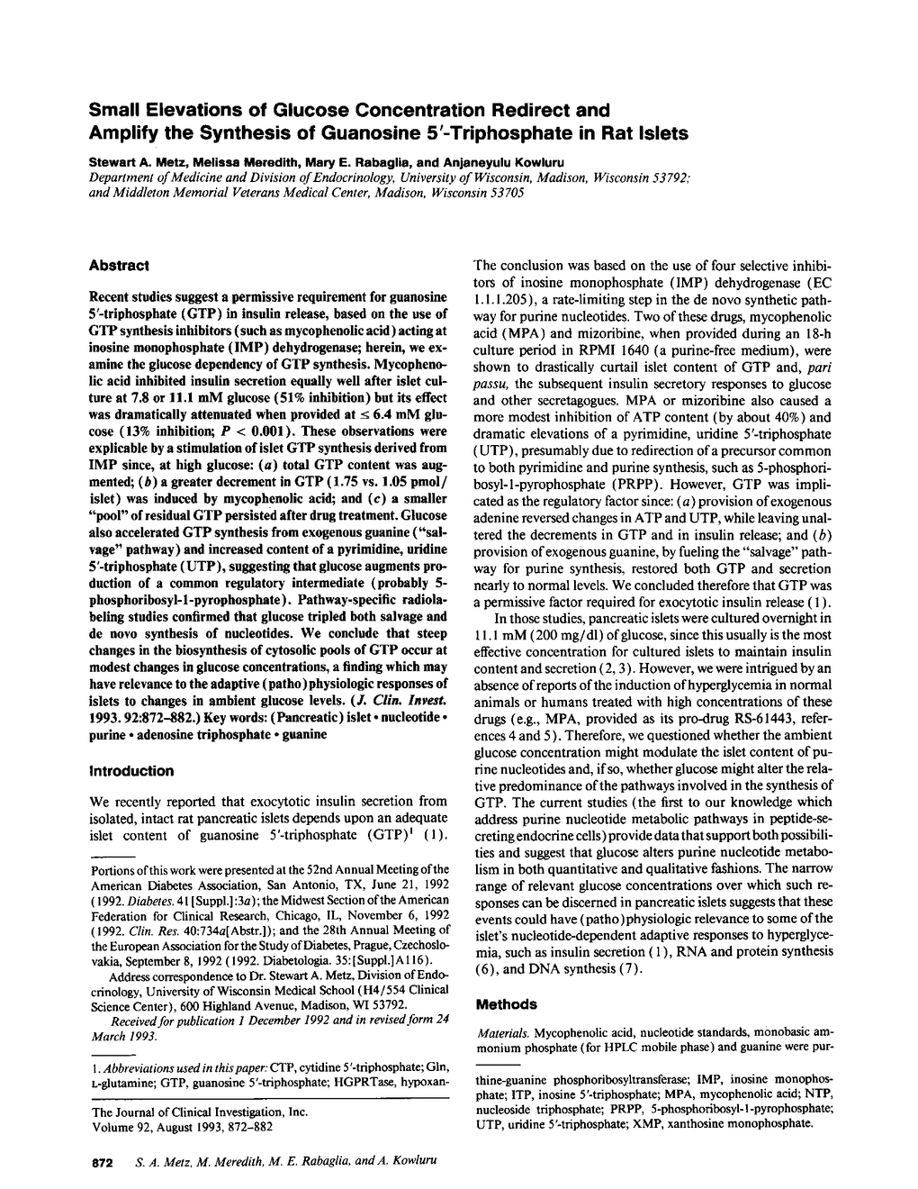 S A Metz, M Meredith, M E Rabaglia, A Kowluru