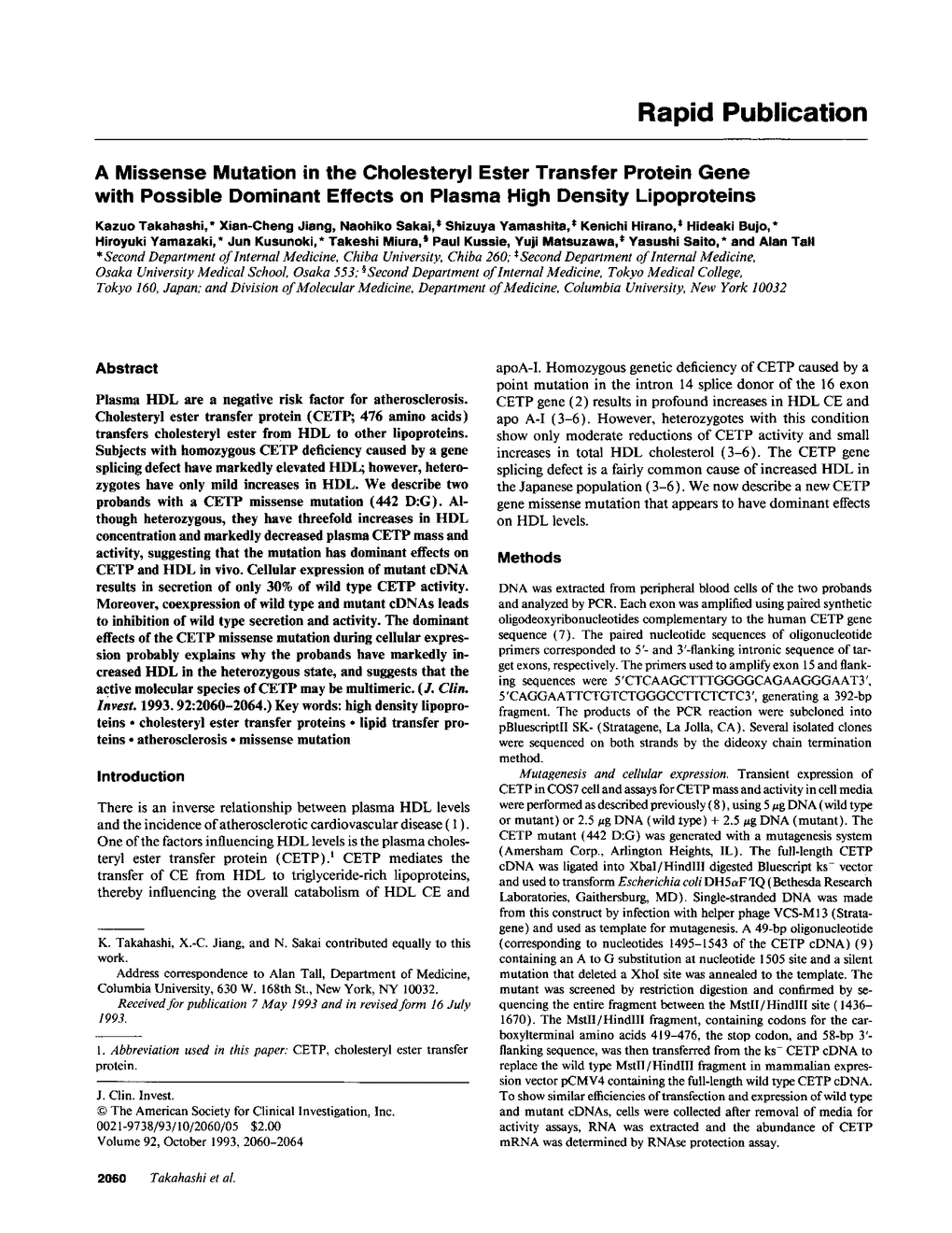 K Takahashi, X C Jiang, N Sakai, S Yamashita, K Hirano, H Bujo, H Yamazaki, J Kusunoki, T Miura, P Kussie