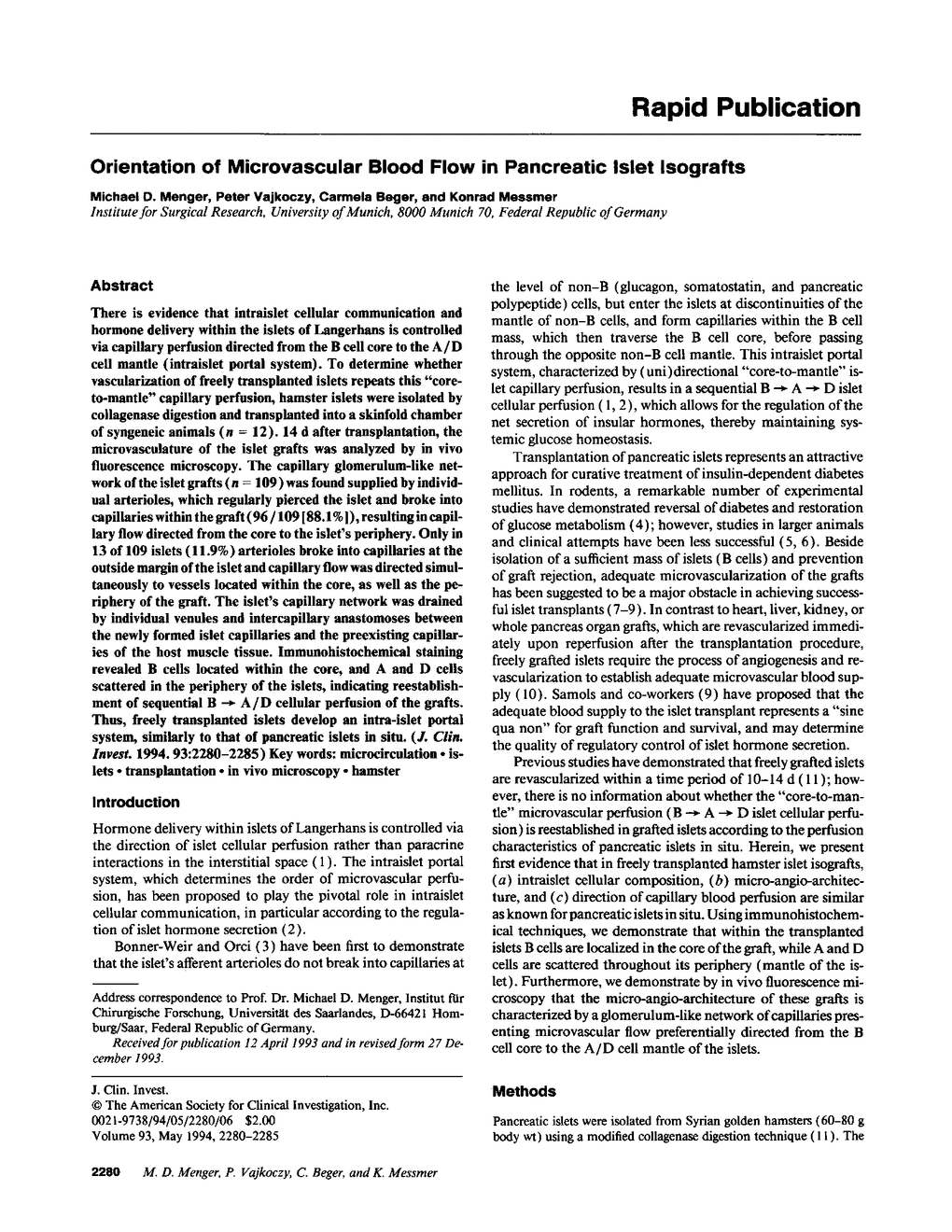 M D Menger, P Vajkoczy, C Beger, K Messmer