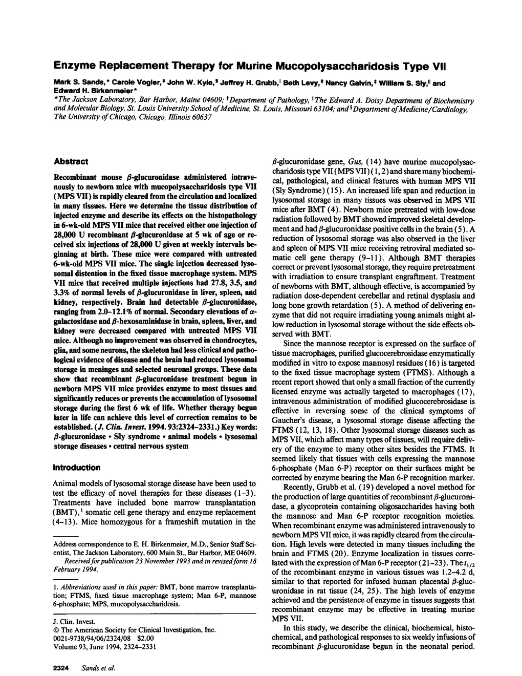 M S Sands, C Vogler, J W Kyle, J H Grubb, B Levy, N Galvin, W S Sly, E H Birkenmeier
