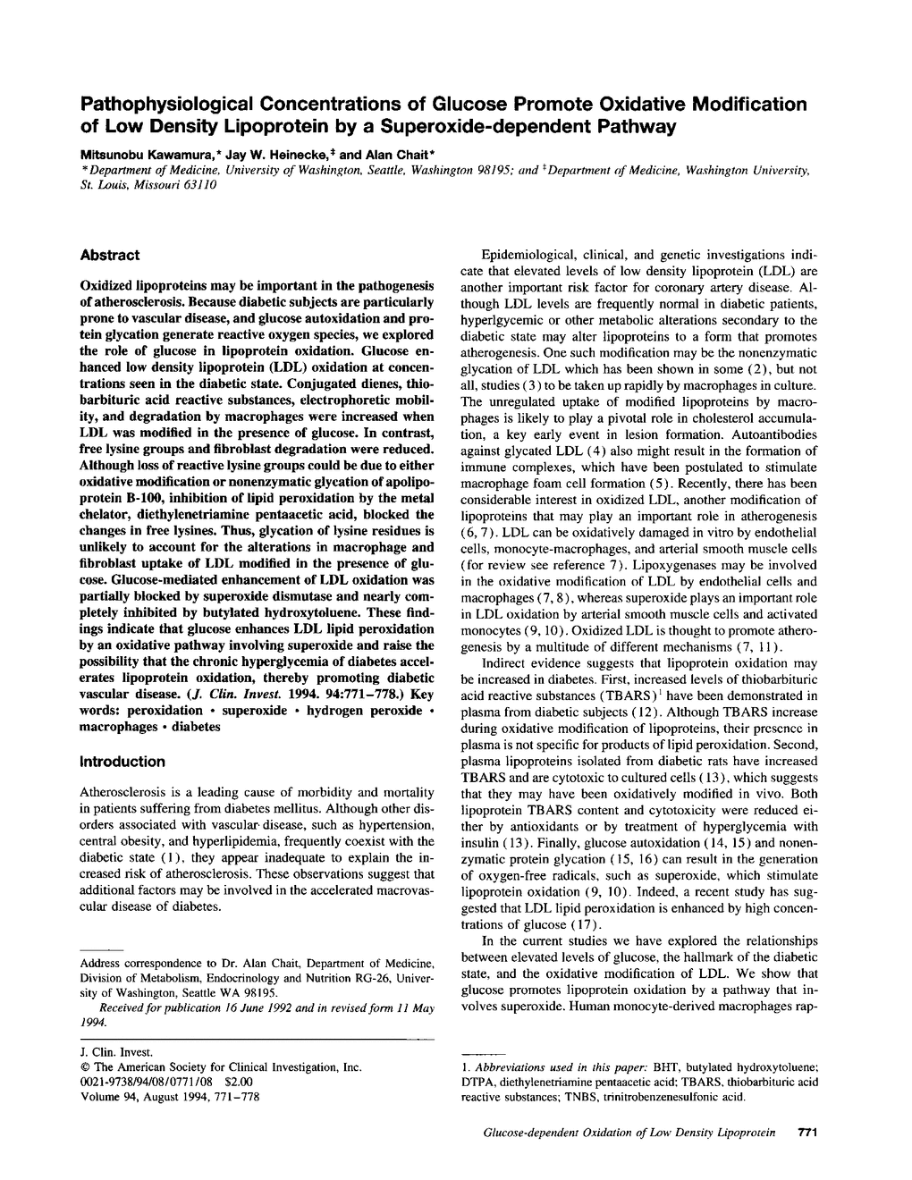 M Kawamura, J W Heinecke, A Chait