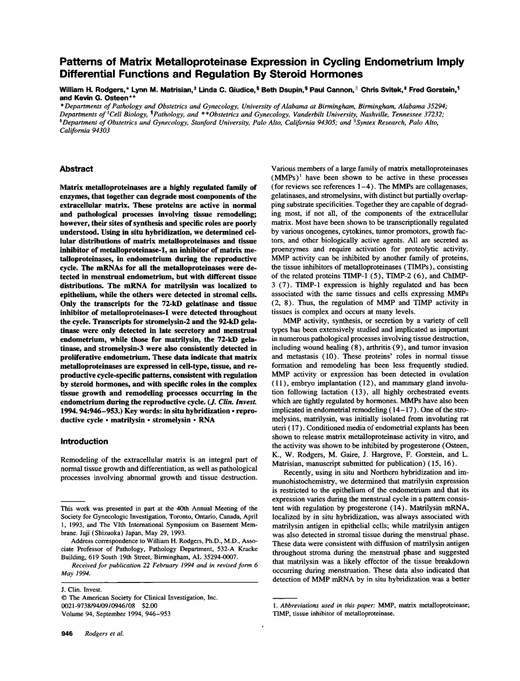 W H Rodgers, L M Matrisian, L C Giudice, B Dsupin, P Cannon, C Svitek, F Gorstein, K G Osteen